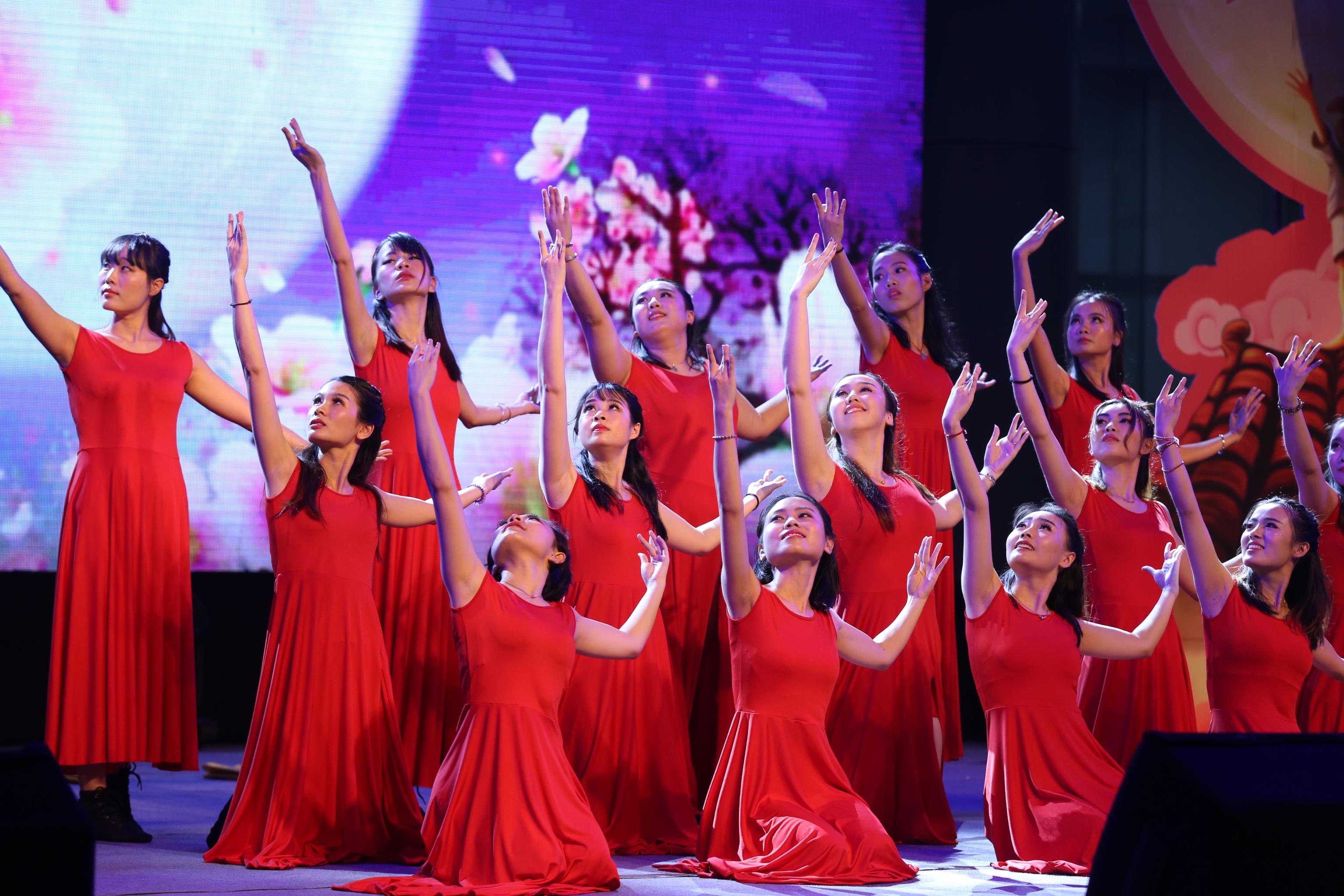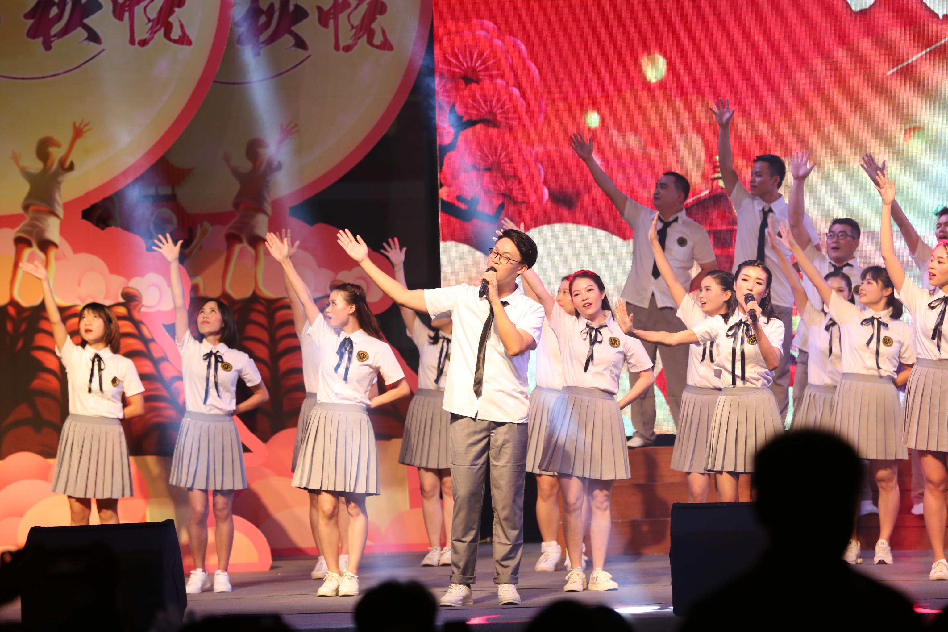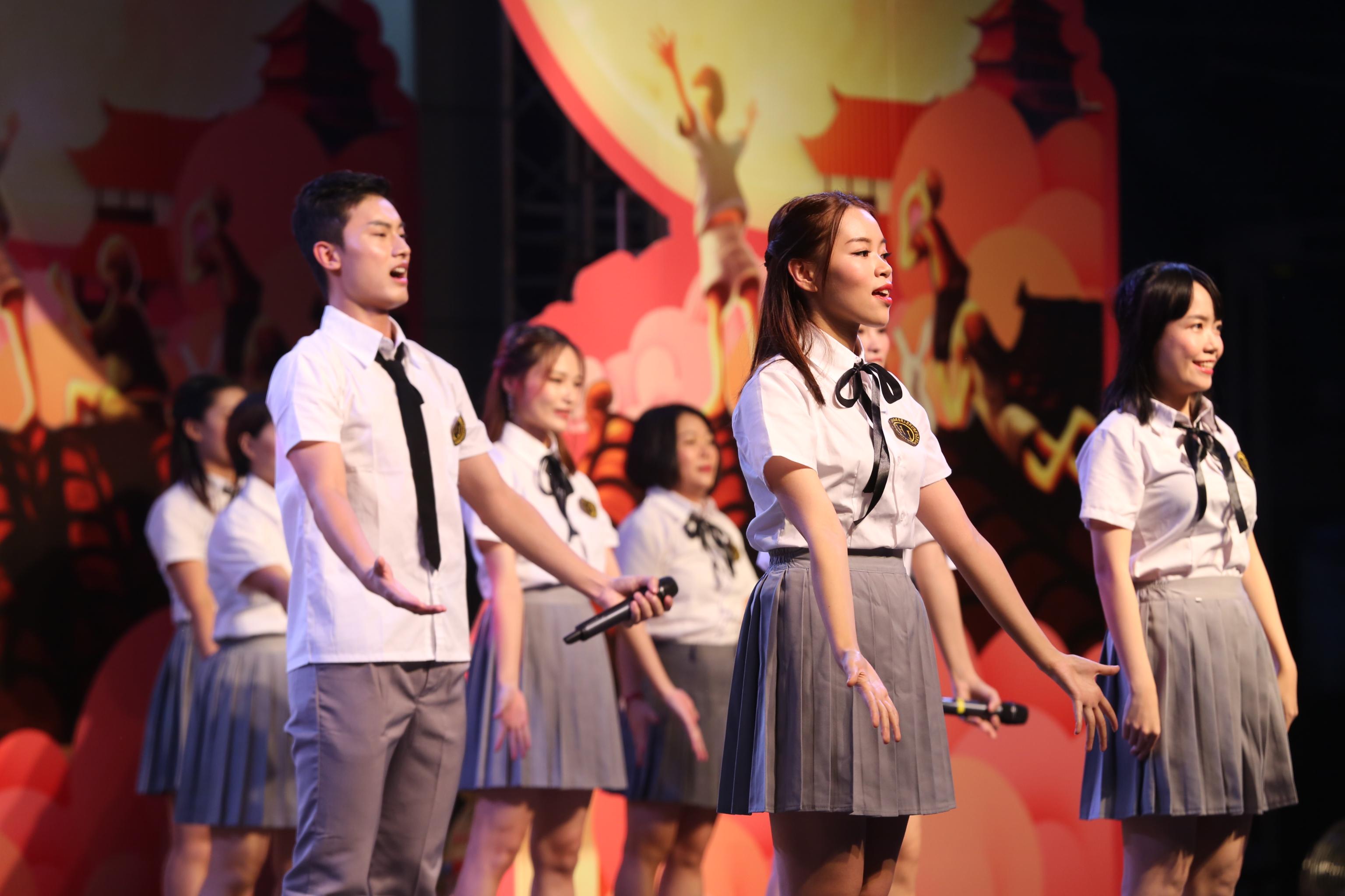 晚上19时,东鹏合唱团以一身青春打扮亮相,先后合唱《东鹏之歌》、《相亲相爱》,以激昂欢快的旋律拉开晚会序幕。