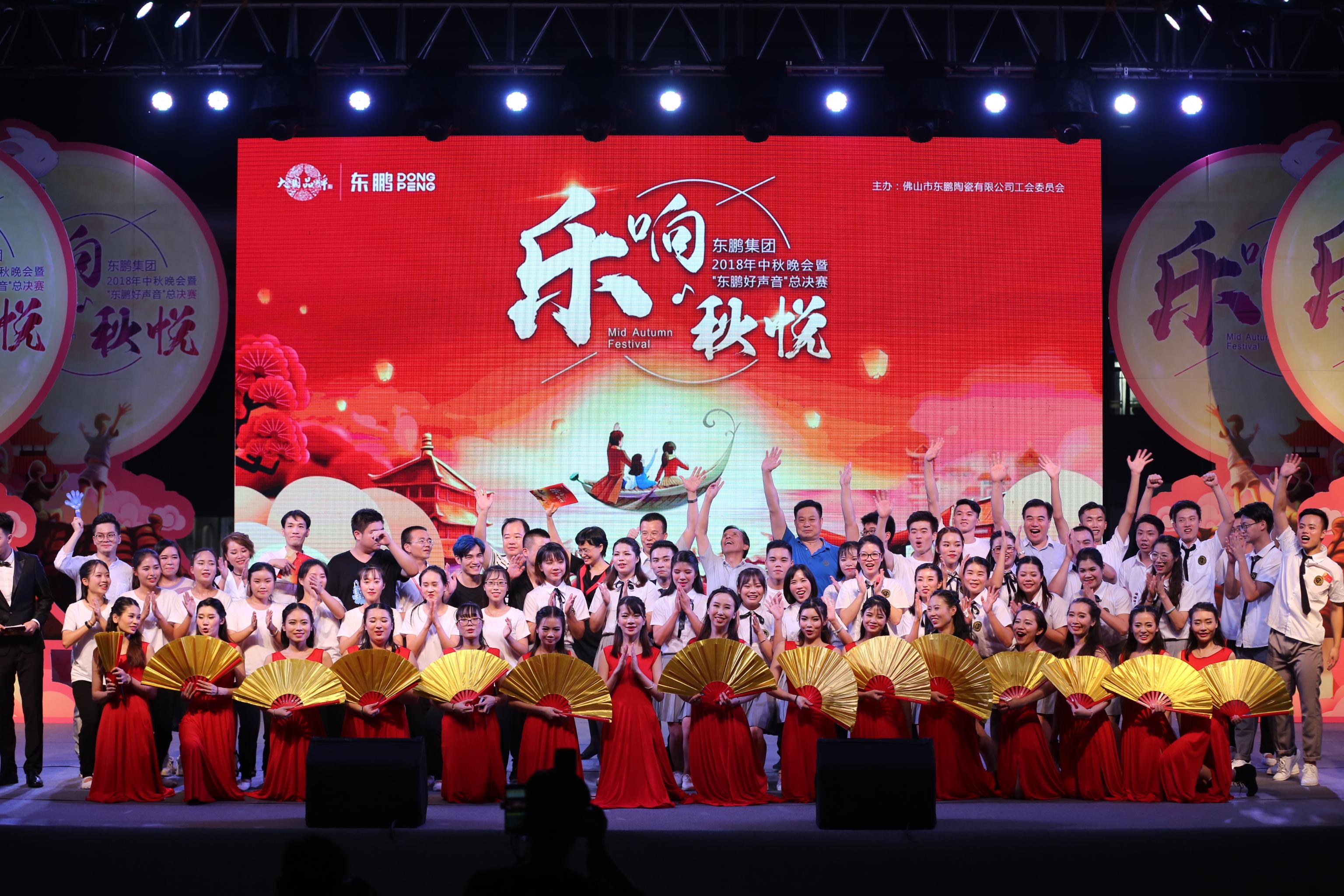 9月20日晚,“乐响 • 秋悦”东鹏集团2018年中秋晚会暨“东鹏好声音”总决赛在中国陶瓷城隆重举行。东鹏控股总裁龚志云、执行董事兼党委书记陈昆列、副总裁林红、副总裁张兄才、董事会秘书兼副总裁黄征、总裁助理兼工会主席梁慧才、国内零售中心总经理钟雄华等公司领导,以及近3000名员工、家属及周边市民共同参与本次盛会。