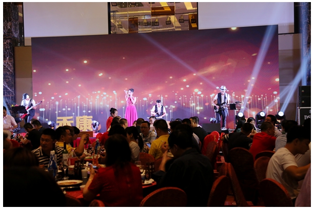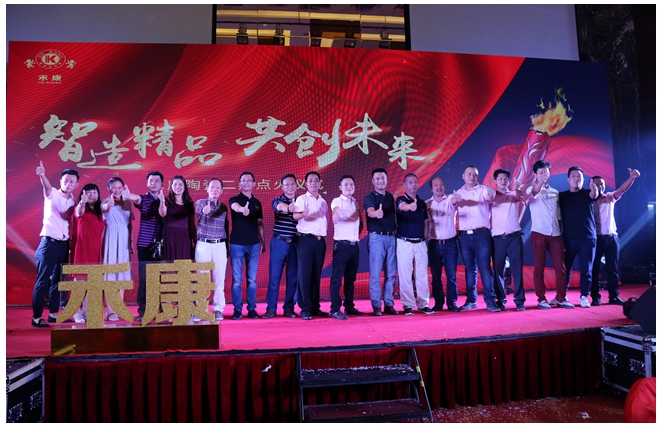 当晚,在藤县保盈海悦酒店,隆重举行主题为“智造精品,共创未来”的庆典晚宴。出席的领导、嘉宾有:禾康企业董事长吴仁明、总经理吴良镜、销售总监俞凯和企业全体员工,来自全国各地的经销商、供应商与合作伙伴。