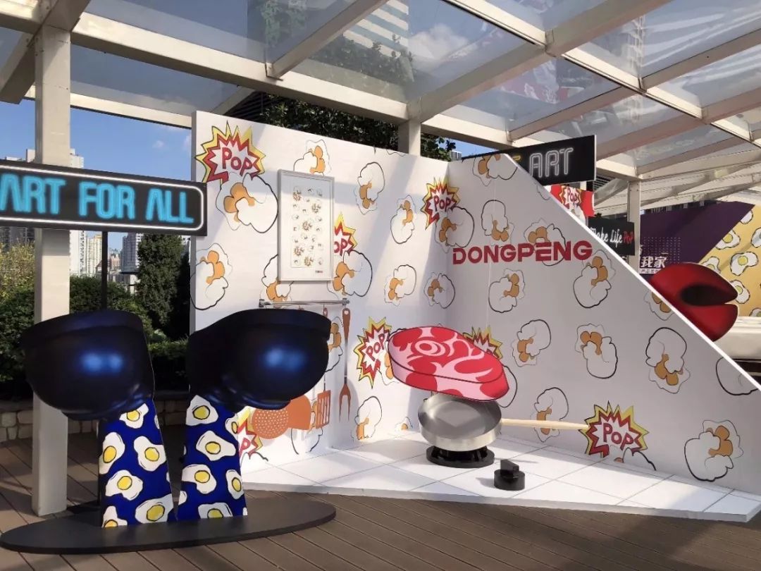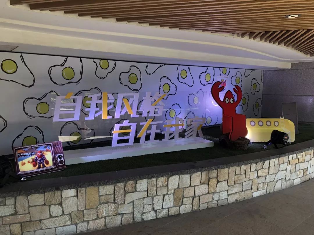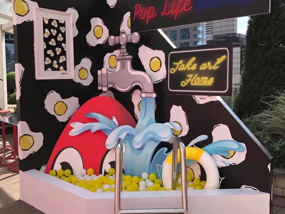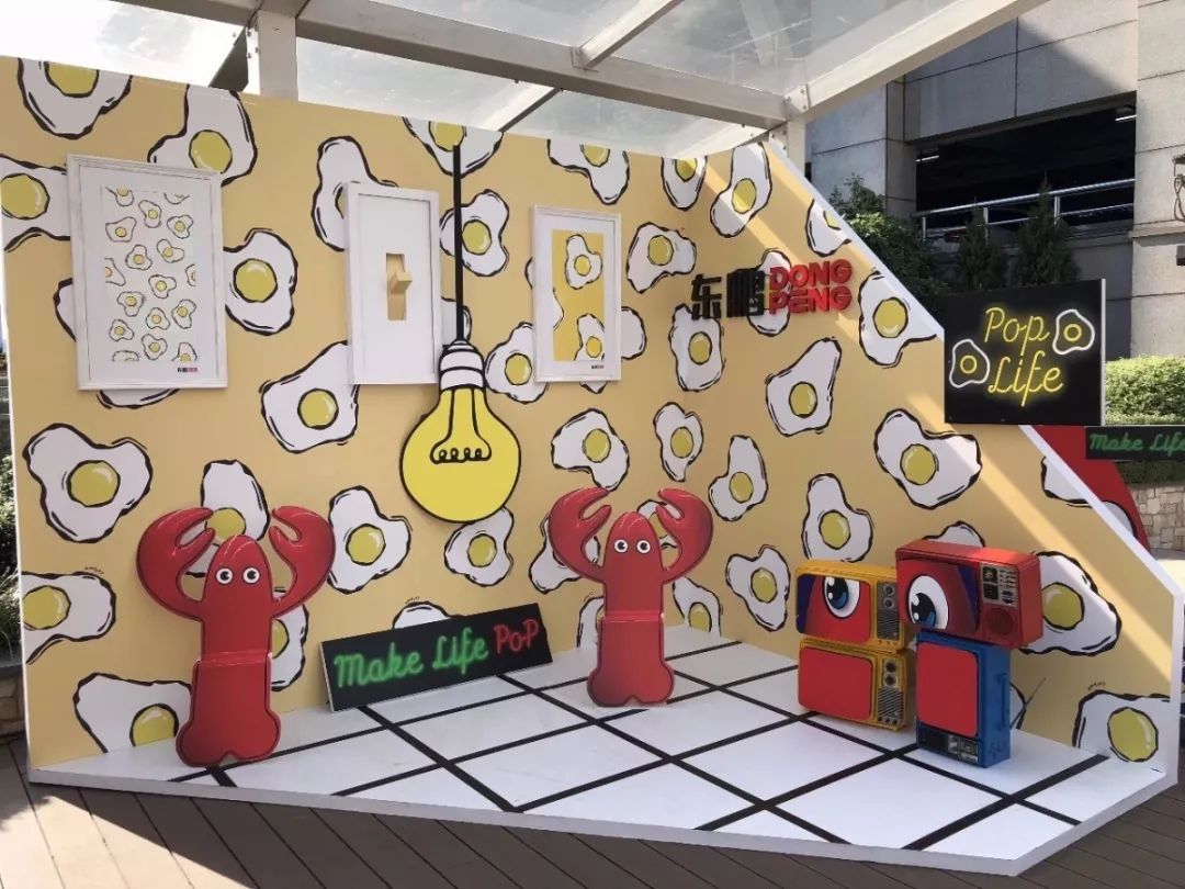 你只知道东鹏,却不知东鹏还是个狂热的艺术爱好者,当充满波普风的煎蛋、爆米花与瓷砖产生了交集,一定会颠覆你对家居审美的认知。既然是“小型沉浸式波普艺术展”,必须亲临现场才能完全感受这高颜值的波普风,视觉效果更是完全炸裂,甚至萌翻你的少女心。 发布会入口处的走廊以 Philip Colbert 艺术展作品《living room》(起居室)为灵感设计,将他的艺术空间“搬”到现场,布满煎蛋的墙壁,挥舞钳子的龙虾椅……如果家的风格就是你的风格,一定非常自在。