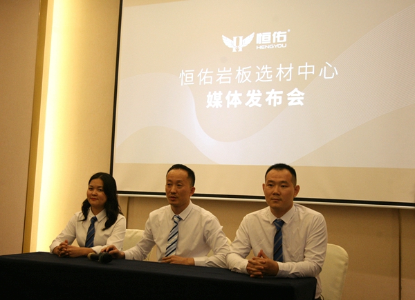 在活动现场,一众媒体代表对恒佑公司总经理李晓生、恒佑岩板选材中心总监尚辉、恒佑岩板全屋定制总监张三春进行了现场提问。