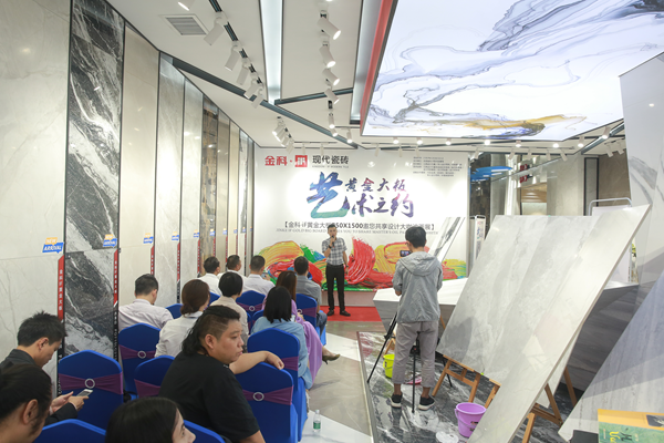 活动伊始金科陶瓷销售总经理廖文祺在致辞中说到:首先对大家这次的到来表示忠心感谢,金科·iF细心聆听年轻消费群体对于现代产品设计元素的诉求,iF现代砖750*1500黄金大板系列,特聘意大利知名设计公司为大板产品把脉,并始终保持和国际潮流风向同步,为消费者定制高端大板产品,希望通过本次活动能让各位设计师和媒体朋友们把我们的产品传播出去,让更多消费者知道金科·iF黄金大板的艺术之美。
