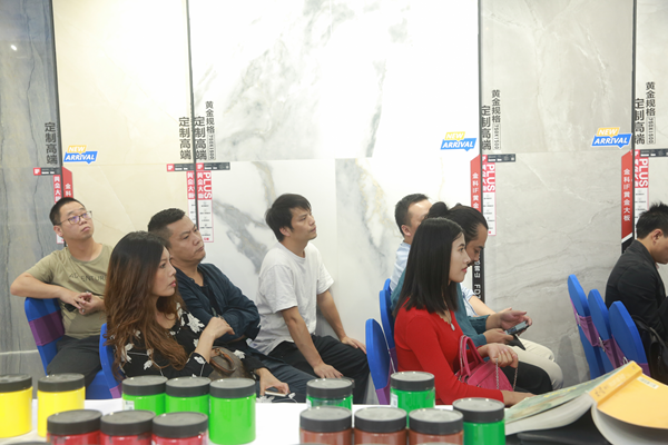 接着集团产品研发总监廖世杰从产品研发的思路上、产品规格的过渡和产品的表现上给我们介绍了750*1500大板的一些特色和特点,第一750*1500规格的推出实现了产品的过渡,第二在运输和仓储上有着非常大的优势,三是相对来说客户更容易接受,在价格上也比较亲民。