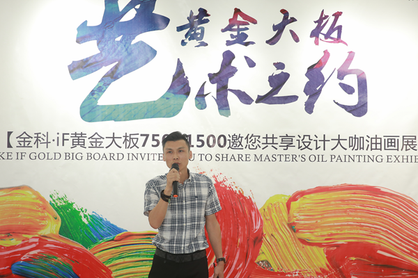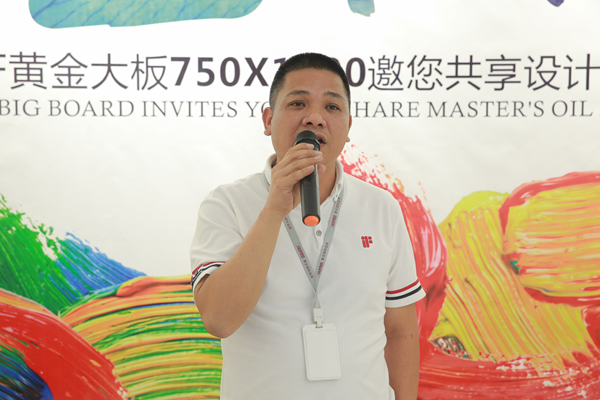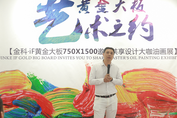 其次是江西设计力量协会执行会长叶森林在致辞中说到:今天活动上我们将会看到各位老师在陶瓷大板上进行第二次创作,而在这之前,江西设计力量协会名誉会长余静赣余工他这两年也一直在从事和研究这块的工作,不断在在陶瓷上创作和发声。从中我们可以了解到陶瓷不单单是用于铺地面和装饰,它也是一个艺术品,至于如何把艺术提高,则需要我们在座各位大咖和设计师,通过艺术与产品的结合来展现出自己的个性创作。今天金科·IF与江西设计力量合作,我们看到了金科对于设计师板块的重视和品牌高度的不断提升。设计师行业离不开建材商的支持,设计师也需要走出去了解到更多的建材产品并用到自己的设计中去。通过这次活动,我相信金科的产品会越来越好,也希望在今后的发展中大家能形成更多的互动和交流,也希望金科·IF瓷砖能在江西设计力量这个平台上得到更有力的传播。