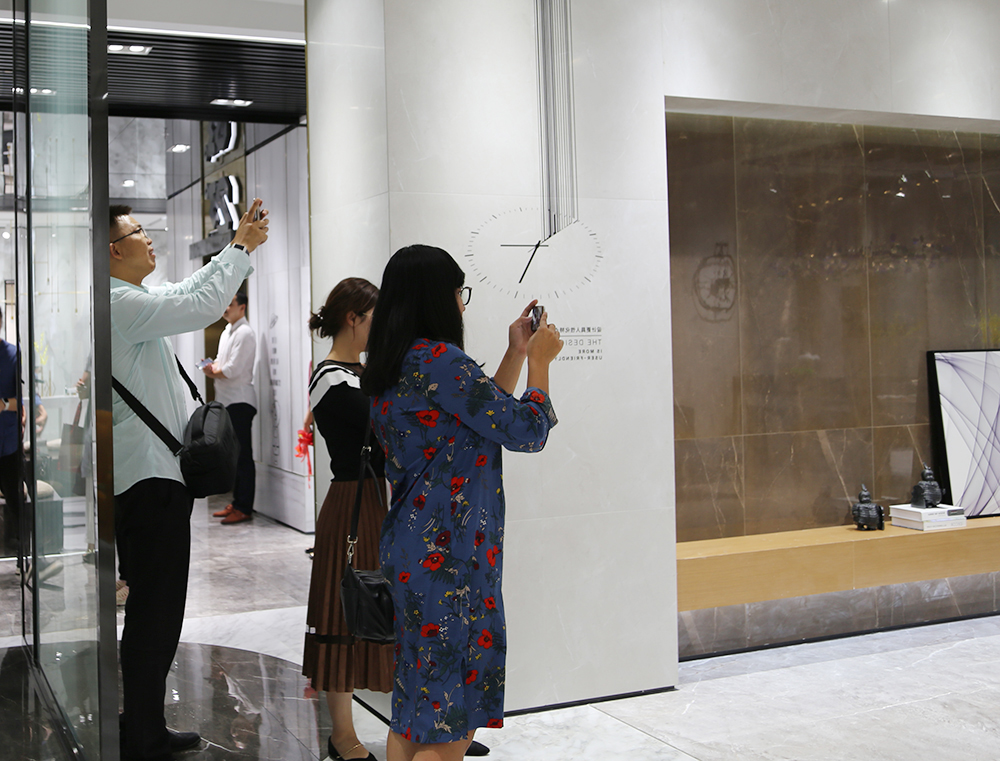 本次星光大板发布会,粤强特请出品牌总经理付忠海、品牌常务副总经理周焱、产品研发部廖世杰分别为在场媒体朋友解密粤强23°·星光大板的奥秘及讲解产品的空间实际应用。在简明扼要的分享会后,媒体及设计师们还参观了新建成的星光大板展示专区。简约舒适的北欧风格展区让身临现场的他们纷纷交口称誉,并举起手中的手机、相机记录美景。