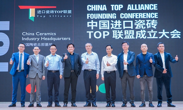 南庄镇委副书记、镇长陈辅明,禅城区经济和科技促进局副局长黎国森,广州设计周执行总监贺文广,台湾著名室内设计师、近景制作设计总监唐中汉,中国建筑装修行业十大最具影响力设计师、广州卫观建筑装饰工程有限公司创始人陈卫群,中国陶瓷城集团常务副总裁兼商业运营中心总经理余敏,中国进口瓷砖TOP联盟会成员,分别是:名誉会长、IMOLA中国区总裁张有利,会长、意大利RAGNO&EMIL中国区董事总经理柯显仁,执行会长、DPI总经理张升华,常务副会长、明禾吉利总裁王加平,副会长、美国莫和克工业集团亚洲区总经理葛宏明博士,副会长CASA BRAVA意美家总经理兰盛标,联盟秘书长、佛山市设计联合会秘书长罗杰,以及排名前30的进口瓷砖品牌的主要负责人,以及40多家媒体代表共约500人共一同见证了中国进口砖行业里程碑式的时刻。