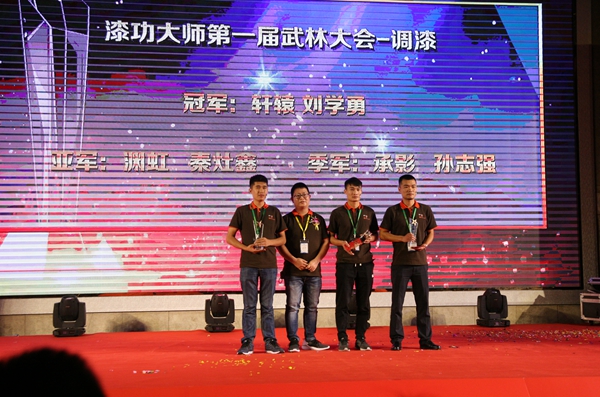 在活动前期,漆之彩还举行了漆功比武大赛,这个比赛一开始,就受到各门店的热烈响应,比赛又细分为调漆比赛、喷漆比赛,都是非常讲究专业技能。会上由技术部经理吴存高、营运部总监李亮分别向两大比赛的获奖者颁奖。