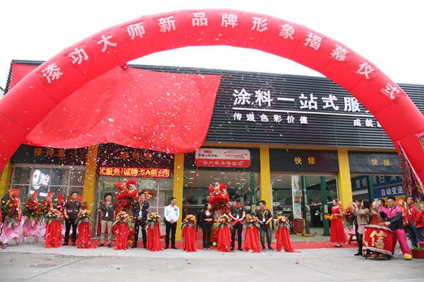 除了漆功大师发布会、十周年庆典,当天还在佛山骏和总店举行新门店揭牌仪式,全场嘉宾移步参观祝贺。