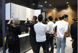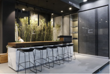 本届广州设计周,LA'BOBO陶瓷薄板除了工程渠道的应用外,相对于2017,他们带来的全空间应用更加全面,不仅包括衣柜面、桌面,还包括橱柜面、中岛台面。