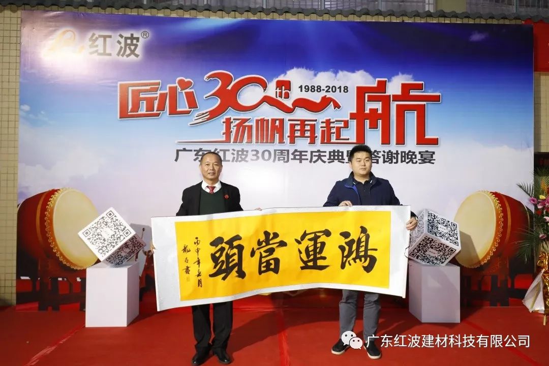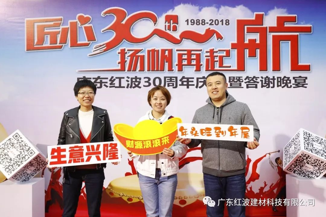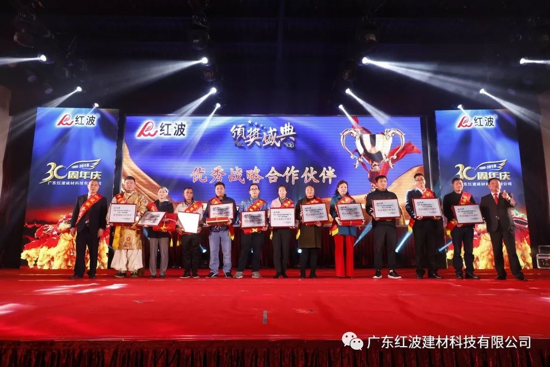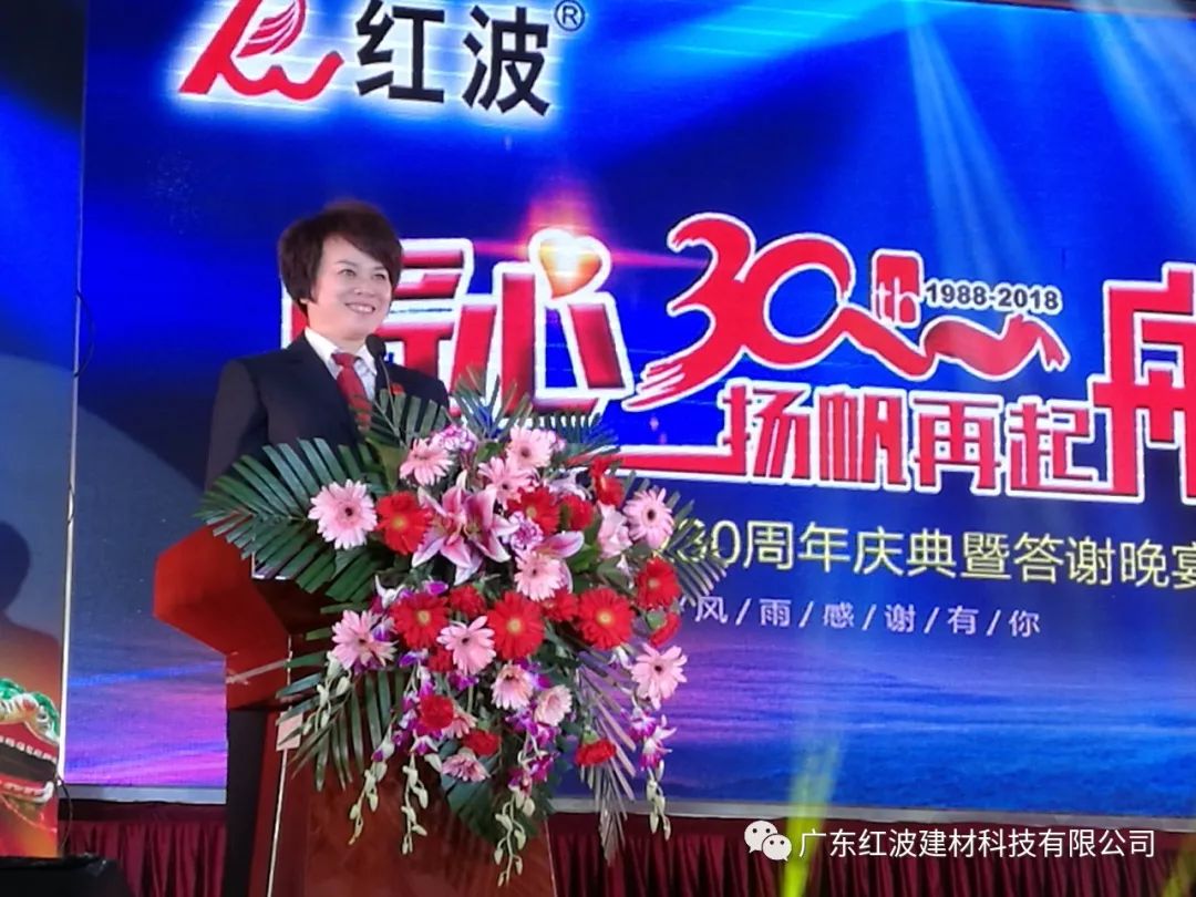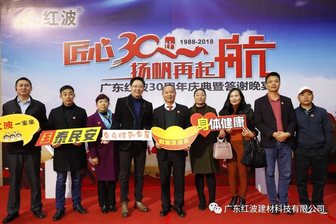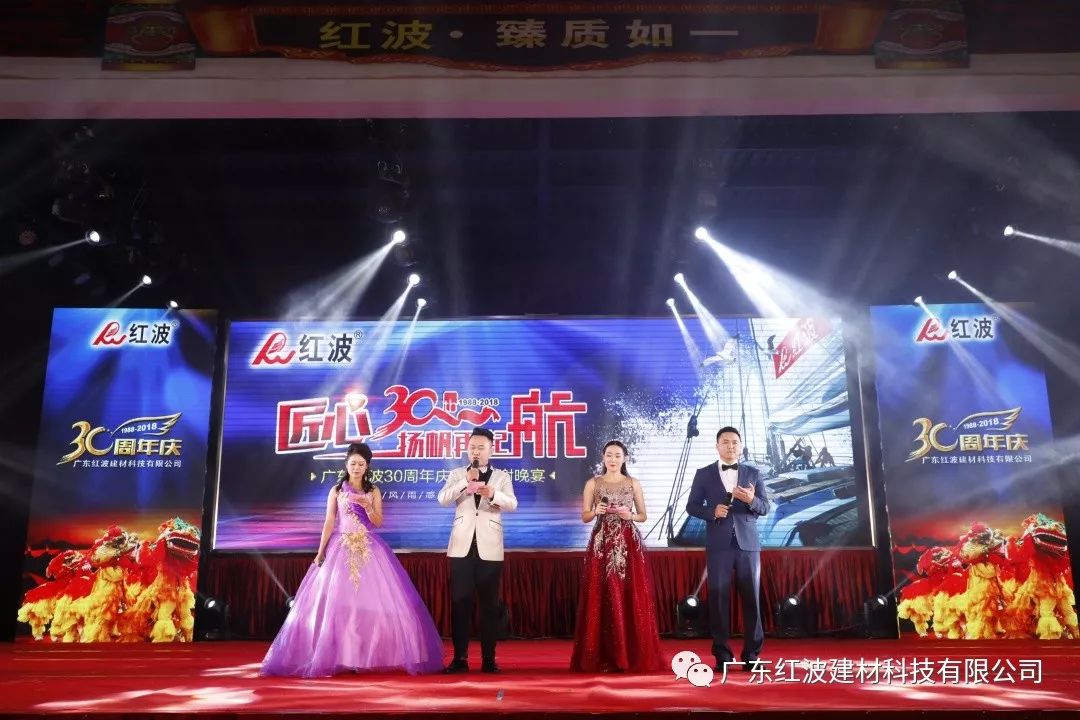 12月8日,广东红波建材科技有限公司迎来了30周年庆典。本次庆典邀请了来自全国各地的经销商、供应商合作伙伴和嘉宾朋友共享喜悦、共享荣光。
