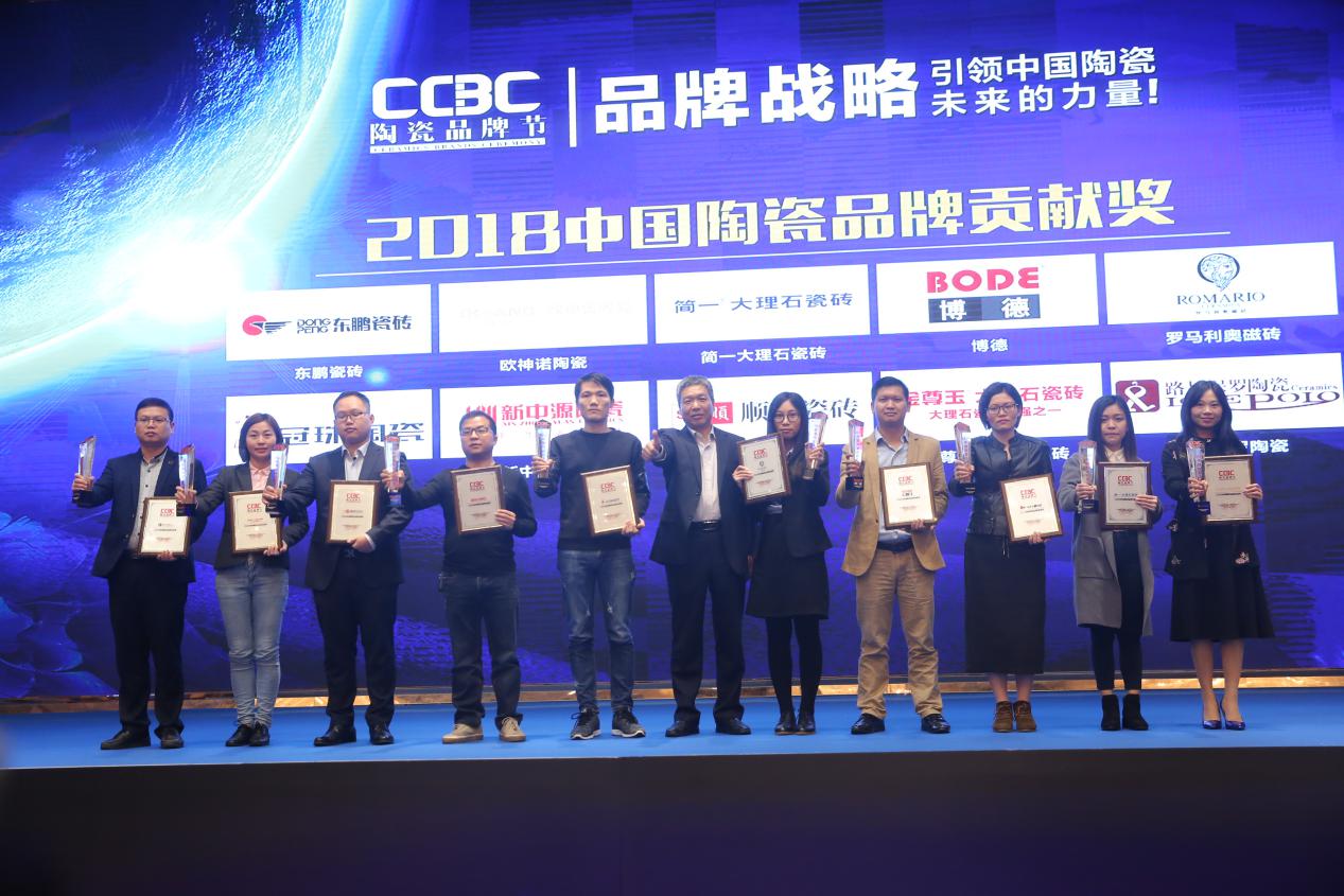2018中国陶瓷品牌贡献奖:东鹏瓷砖、欧神诺陶瓷、简一大理石瓷砖、博德、罗马利奥磁砖、冠珠陶瓷、新中源陶瓷、顺辉瓷砖、金尊玉大理石瓷砖、路易保罗陶瓷