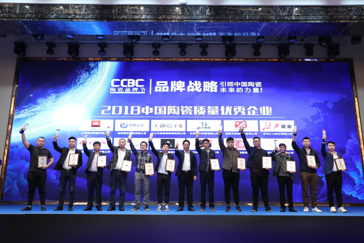 2018中国陶瓷质量优秀企业:江西神州陶瓷有限公司、淄博智联建陶有限公司、佛山天御铭家陶瓷有限公司、甘肃恒大陶瓷有限公司、邯郸市金缔陶瓷有限公司、河北汇力瓷业有限公司、江西金泰源陶瓷有限公司、新时代陶瓷有限公司、山东联众陶瓷有限公司、陕西华达陶瓷有限公司、阳城福龙陶瓷有限公司、广西禾康陶瓷有限公司