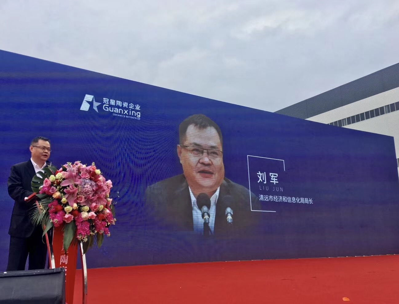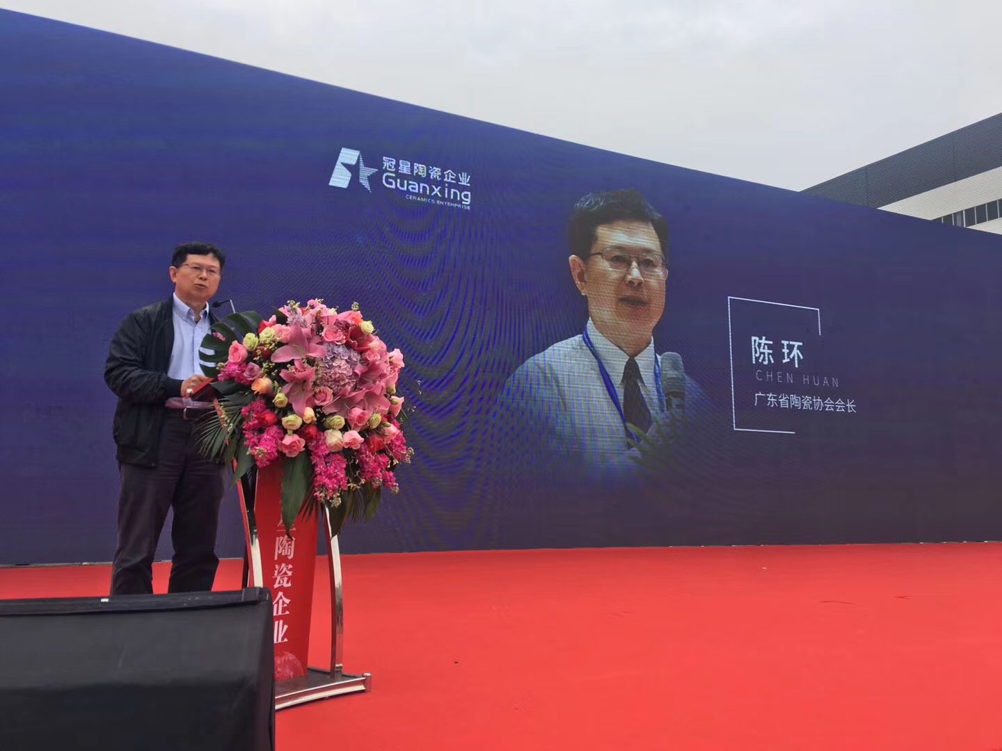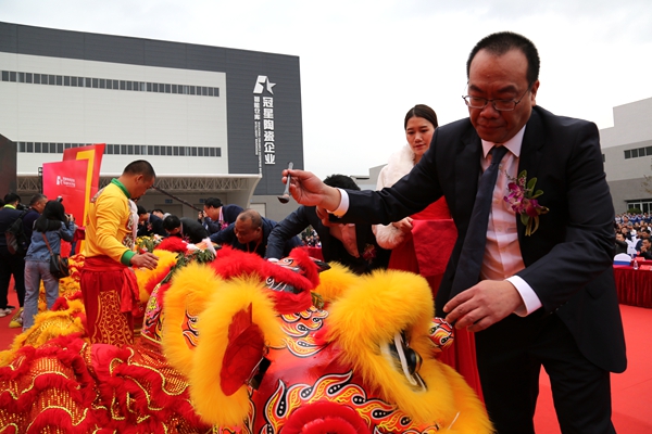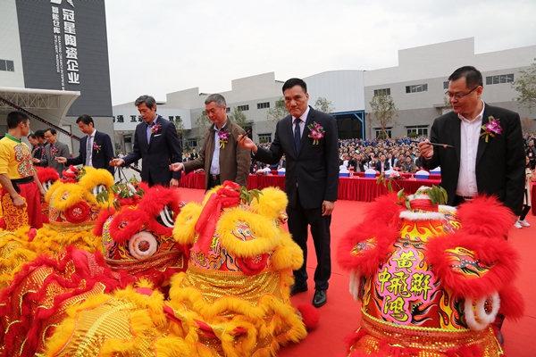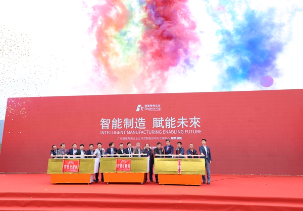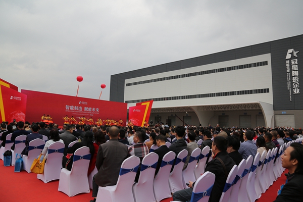 广东冠星陶瓷企业有限公司董事总经理何友和、董事副总经理廖辉年、营销总经理王贵苏、董事长助理何有坚、清远市经济和信息化局局长刘军、清远市清城区区委常委统战部部长罗泽光、清远市清城区源潭镇人民政府党委副书记镇长邱劲刚、中国建筑卫生陶瓷协会常务副会长缪斌、中国建筑卫生陶瓷协会副秘书长宫卫、广东陶瓷协会会长陈环、国家建筑装修材料质量监督检验中心院长傅小苗、广东陶瓷协会秘书长陈振广、佛山市陶瓷协会秘书长尹虹、中国建筑卫生陶瓷协会流通分会秘书长刘勇、中国建筑卫生陶瓷协会机械节能环保分会执行理事长及景德镇陶瓷大学教授张栢清、广东省清远市佛山商会会长何渐源,以及政府领导、协会嘉宾、媒体朋友等上千人共同见证,中国建陶产业首个、全球第2个超高型立体式智能化仓储中心启航盛举,标志着冠星企业开创了中国建陶智能仓储的先河,成为陶瓷行业高科技、高效率、高储量的智能存储风向标,更是引领传统陶瓷行业向智能创新、高效高质的高端行业发展。