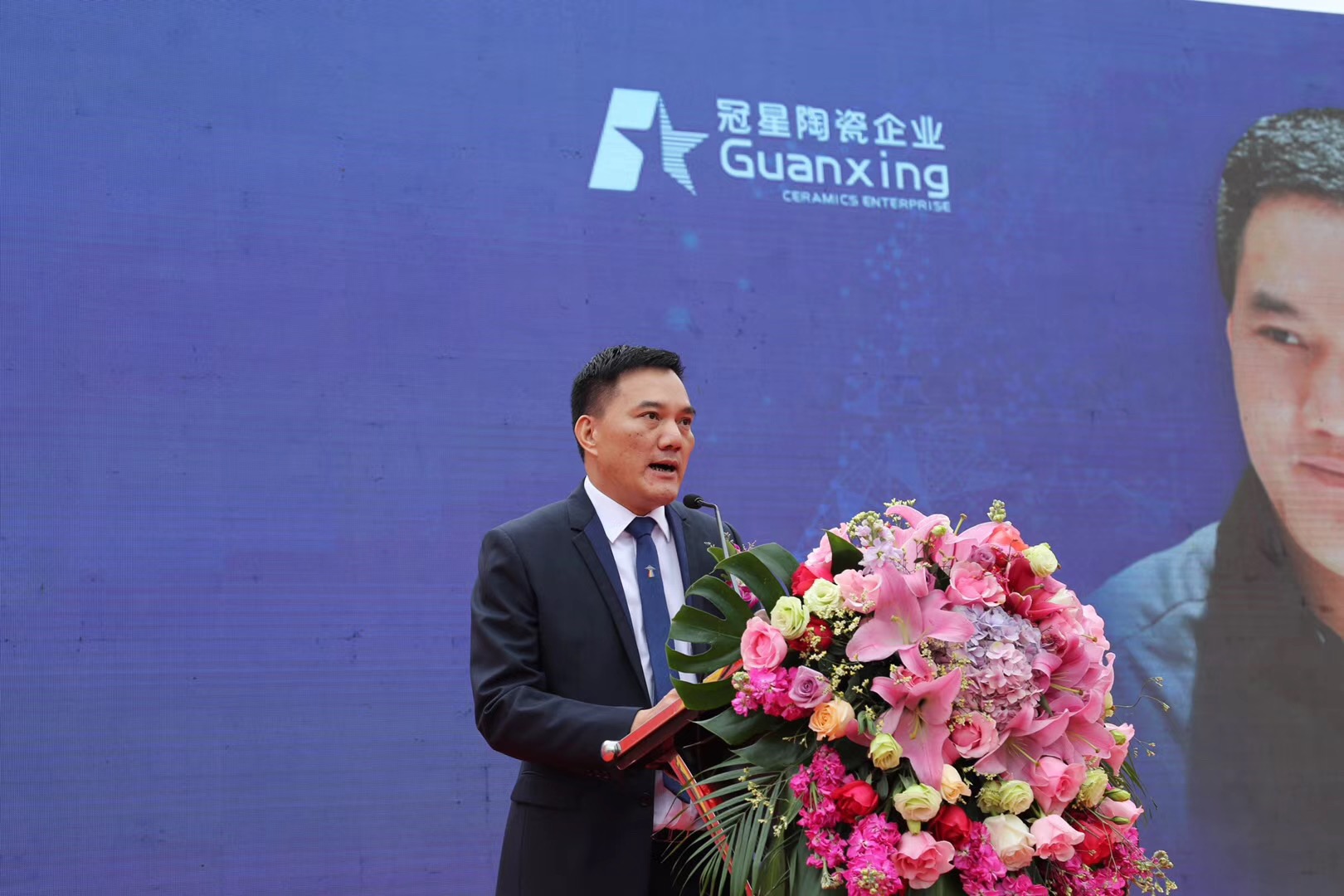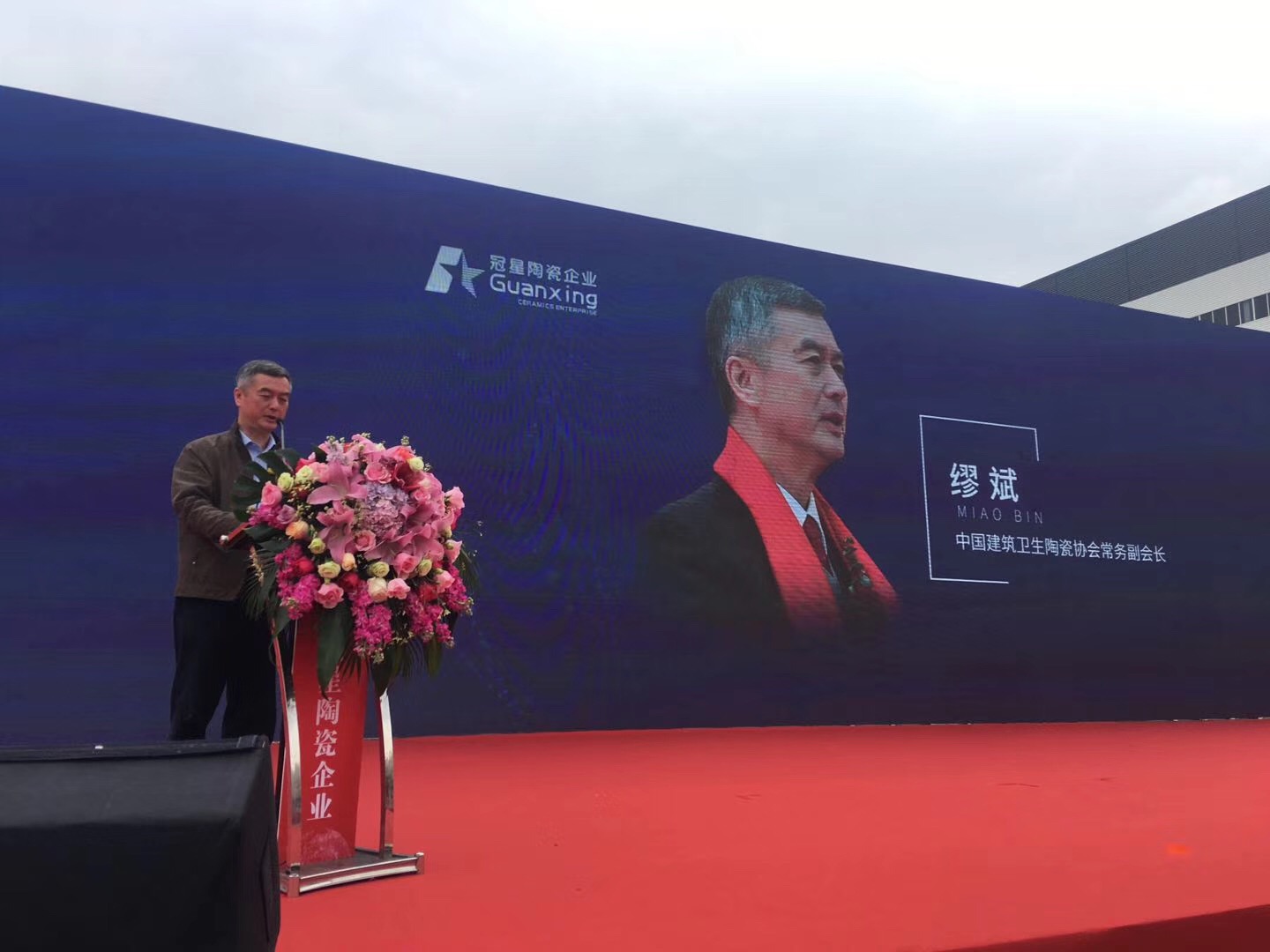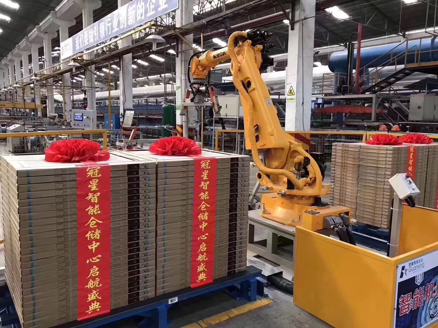 广东冠星陶瓷企业有限公司董事总经理何友和、董事副总经理廖辉年、营销总经理王贵苏、董事长助理何有坚、清远市经济和信息化局局长刘军、清远市清城区区委常委统战部部长罗泽光、清远市清城区源潭镇人民政府党委副书记镇长邱劲刚、中国建筑卫生陶瓷协会常务副会长缪斌、中国建筑卫生陶瓷协会副秘书长宫卫、广东陶瓷协会会长陈环、国家建筑装修材料质量监督检验中心院长傅小苗、广东陶瓷协会秘书长陈振广、佛山市陶瓷协会秘书长尹虹、中国建筑卫生陶瓷协会流通分会秘书长刘勇、中国建筑卫生陶瓷协会机械节能环保分会执行理事长及景德镇陶瓷大学教授张栢清、广东省清远市佛山商会会长何渐源,以及政府领导、协会嘉宾、媒体朋友等上千人共同见证,中国建陶产业首个、全球第2个超高型立体式智能化仓储中心启航盛举,标志着冠星企业开创了中国建陶智能仓储的先河,成为陶瓷行业高科技、高效率、高储量的智能存储风向标,更是引领传统陶瓷行业向智能创新、高效高质的高端行业发展。