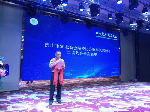 佛山市湖北商会陶瓷协会监事长郭衍军宣读到会嘉宾名单