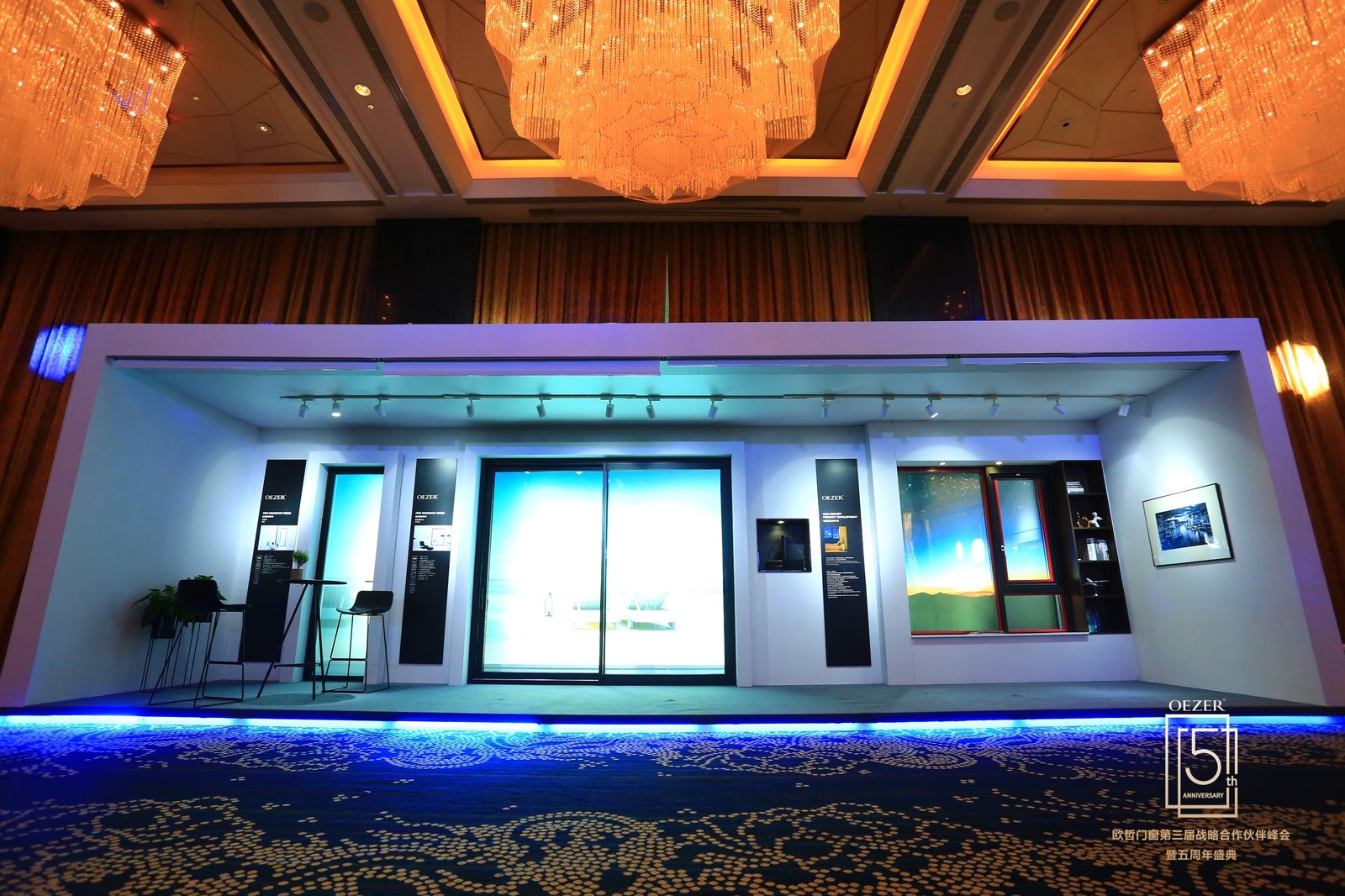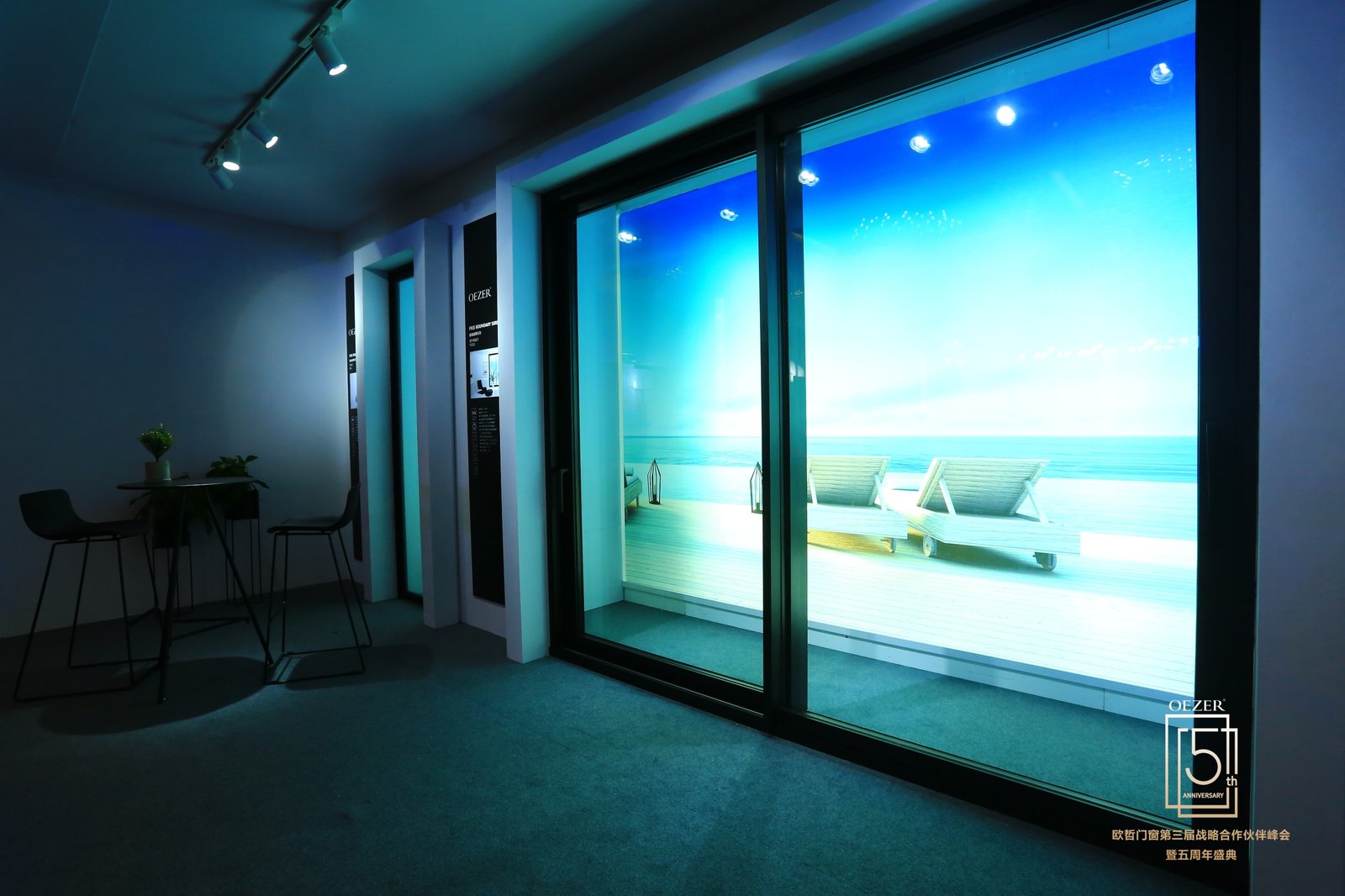 随着9位欧哲领导及特邀嘉宾共同登台,位于会场后方的新品也正式揭开了神秘的面纱。以“自由边界”为名的窄边框提升推拉门新品,通过手触·眼观·耳闻三感结合的方式,完美、详细地向观众展现了优越的科技性能和安全性能。