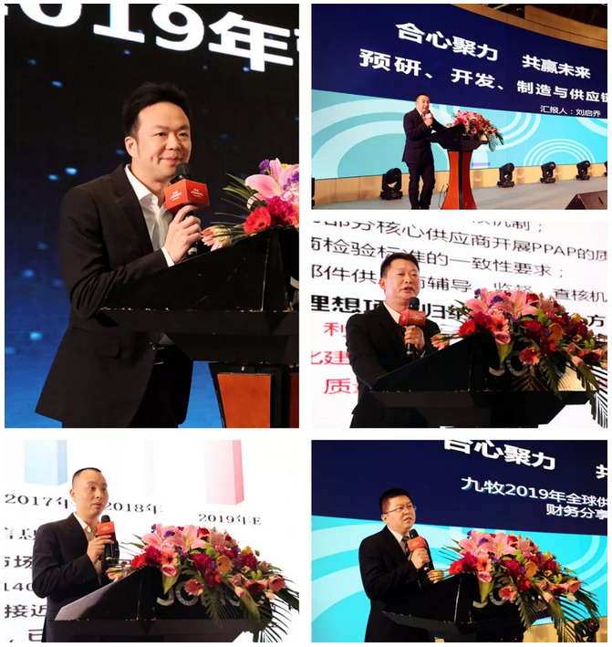 随后,九牧执行总裁林友色、副总裁刘启乔、质量管理总经理谢晓军、财务中心副总经理黄东平、绿色供应链中心总经理吴自奋分别就2019年营销及产品规划、质量管理、财务政策、供应链管理等模块进行宣讲。