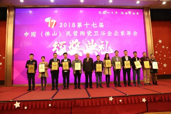 年会期间,2018第十七届民营陶瓷卫浴企业家年会组委会对2018年度一批优秀陶瓷、卫浴与配套企业进行了简洁而隆重的颁奖仪式,颁发了“十大建陶风云企业”、“十大建陶明星企业”、“优秀陶机装备品牌企业”以及“十大卫浴品牌企业”等奖项。国瓷康立泰凭借其过硬的综合技术实力及其深远的品牌影响力荣获“2018年度建陶色釉料风云企业”,这已经是康立泰连续多年获得该荣誉称号了。