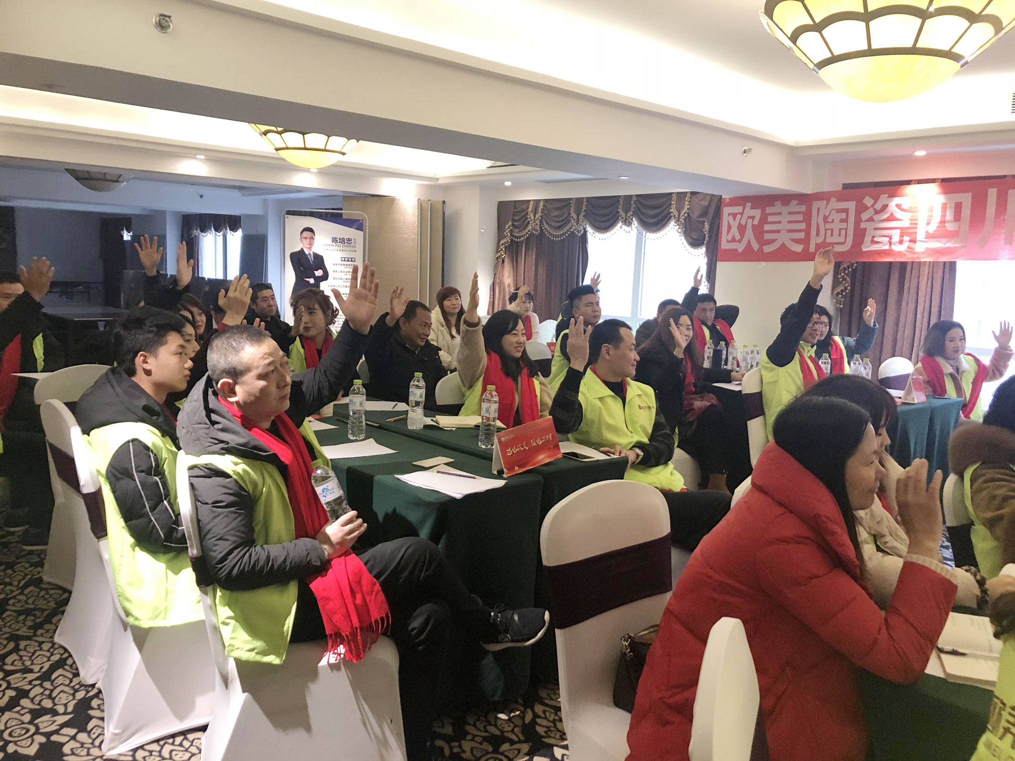2月23日,思想的盛宴仍在继续。欧雅集团产品战略中心总经理陈培忠,从当下行业格局及市场竞争态势为切入点,通过深入浅出的道理、幽默生动的表达、红包激励和精彩形象的案例,为现场经销商们开启思维战术训练,讲授产品销售力实战技巧。系统的、实战化的授课模式赢得了现场经销商们的阵阵掌声与活跃提问,学习氛围极其热烈。
