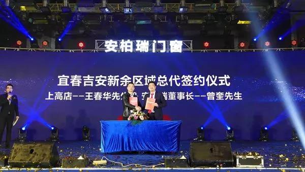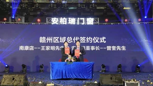 进入到安柏瑞2019年度内区域总代理战略签约仪式现场,董事长曾奎分别与赣州区域总代理南康店王总,宜春吉安上高店王总签订战略合作协议书,崭新开启安柏瑞门窗2.0时代。