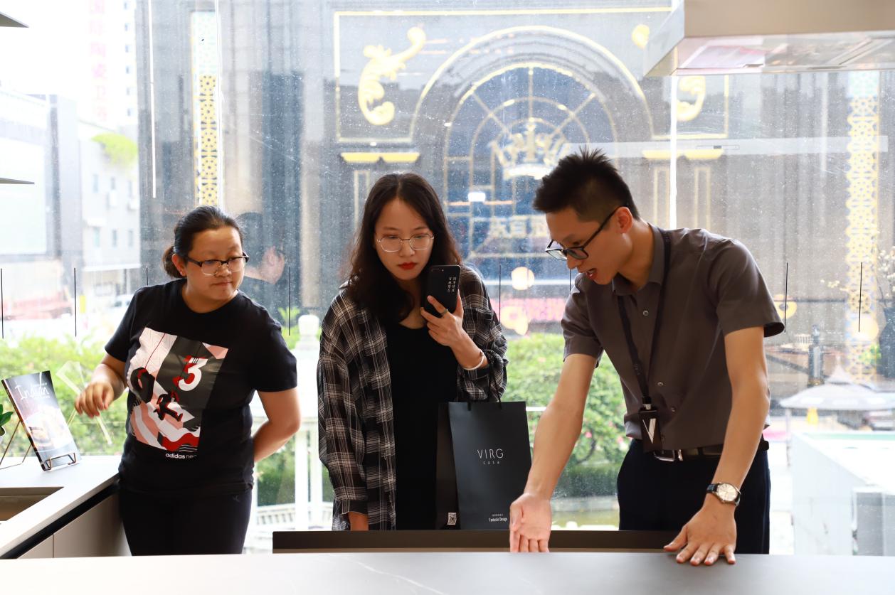 在沉浸式参观体验中,媒体朋友们对“岩作”两大新系的感受不再是停留在品牌宣传上,而是真切地感受到“岩作”系列是如何将岩板家居定制全案进行有效落地的;通过体验电动岛台、智能魔镜、无线充电、隐藏式电磁炉等智能化功能,前所未有地感受到了进口岩板服务高端家庭的更多可能性,感叹“岩板家居全案创导者”舍「VIRG CASA」其谁。
