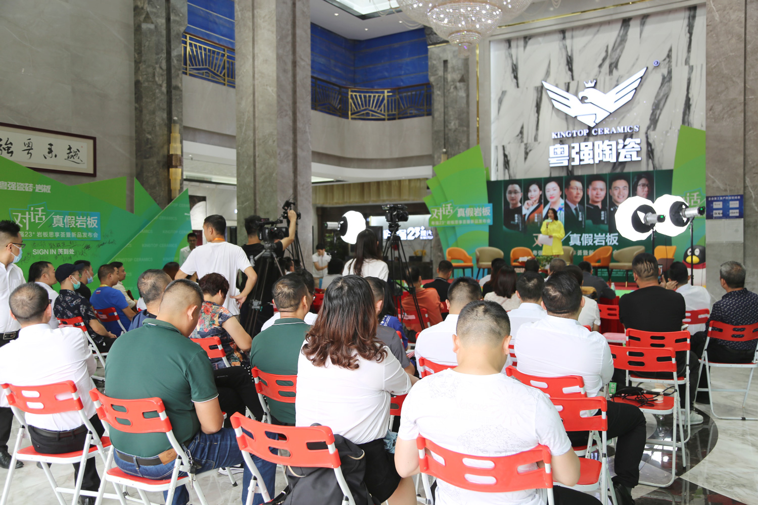 粤强23°岩板的新品发布剪彩仪式