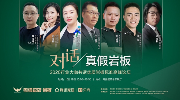 就此,粤强联合制造联盟、广东陶瓷协会及腾讯家居,于10月19日举办了「对话•真假岩板」——2020行业大咖共话优质岩板标准高峰论坛。广东陶瓷协会秘书长王卫国、中国建筑装饰协会材料应用分会秘书长梁宏瑀、制造联盟董事长金亚范、金堂奖(联合赛区)首席执行官张英梅、金堂奖佛山站副会长汪志科、广东陶瓷协会副秘书长魏海峰、搜狐家居负责人许俊、粤强品牌总经理谢访林、粤强集团市场中心总经理冼桐华及一众媒体朋友出席了本次论坛,并以直播的形式跟大家探讨真假岩板的界定标准,此话题站于风口浪尖处,成功吸引了3.7万网友的围观。