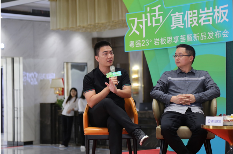 论坛的尾声,与会大咖现场对粤强23°岩板进行了鉴别,并正式拉开了粤强23°岩板的新品发布会帷幕。粤强品牌总经理谢访林还即场对粤强23°岩板的优势进行了深入浅出的介绍,并于会后就粤强23°岩板问题回答了到场记者媒体的采访。