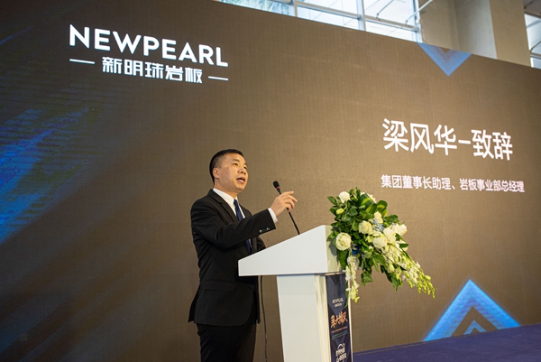 随后,新明珠集团董事长助理兼岩板事业部总经理梁风华上台发言。梁总表示,虽然很多企业都在关注高定,着手高定,但是国内能做好高定的品牌还是屈指可数,而新明珠岩板则是拥有绝对竞争力进军高定市场的实力品牌。未来,新明珠岩板将继续对产品进行创新迭代,在产品的规格、质感、功能、花色上进行突破,满足高定市场需求,为岩板高定市场的发展贡献力量.