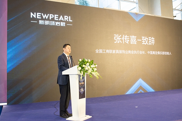 会上,全国工商联家具装饰业商会执行会长、中国高定俱乐部创始人张传喜首先发表了讲话。张会长指出,在高定风口之下,具有建筑装饰材料和泛家居饰面材料双重属性的岩板则有着其它材料无法比拟的优势。岩板在高定领域的应用正在不断拓宽,远超人们想象。新明珠岩板作为行业的头部品牌,更是屡次突破现有岩板产品的边界,不断推陈出新,引领岩板产品的新潮流。