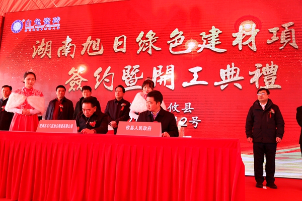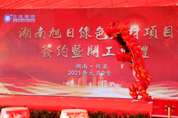 2021年元旦期间的1月2日,白兔陶瓷湖南生产基地,彩旗飘飘,歌声嘹亮,锣鼓喧天,好一派节日的气氛,绿色建材项目签约暨开工典礼仪式在湖南株洲攸县隆重举行。湖南株洲市、攸县有关部门领导以及各界嘉宾、媒体代表、白兔陶瓷的合作伙伴齐聚一起,见证白兔陶瓷踏上又一个新的征程
