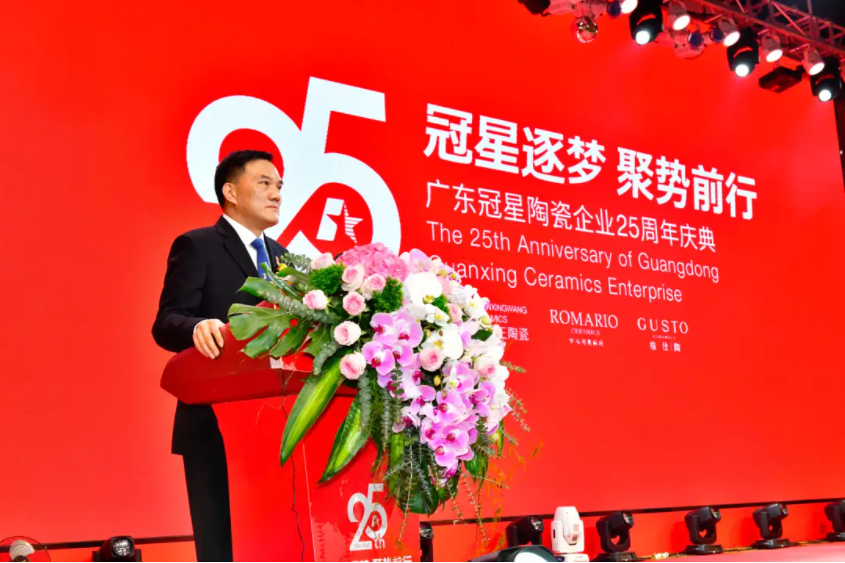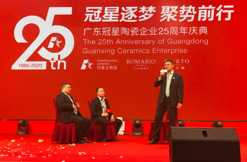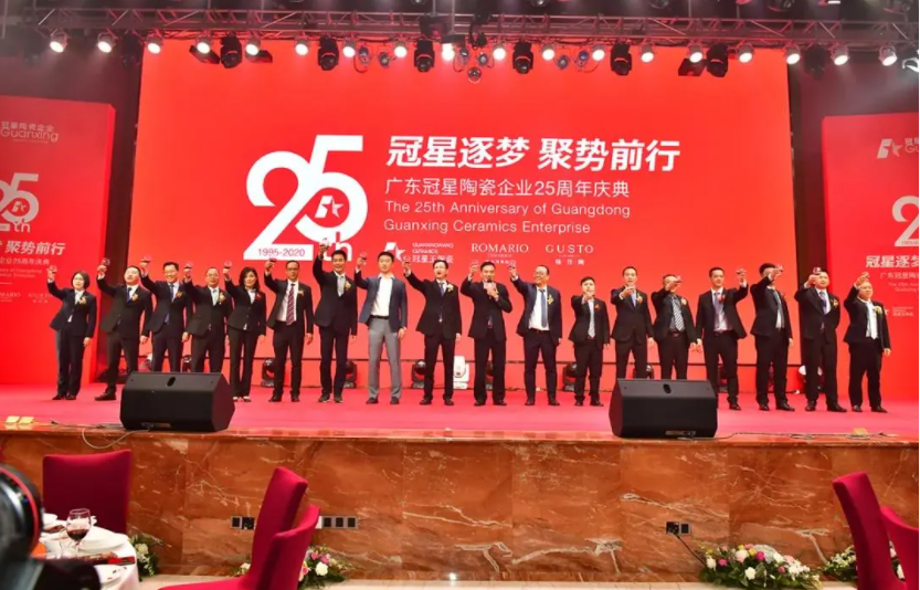 1月5日,“冠星陶瓷企业25周年庆典暨格仕陶磁砖2021营销峰会”在佛山隆重召开,大会以“冠星逐梦 聚势前行”为主题绚丽呈现,广东冠星陶瓷企业董事总经理何友和、广东冠星陶瓷企业董事副总经理廖辉年、广东冠星陶瓷企业营销总经理王贵苏、格仕陶磁砖品牌营销总经理李叶训等公司高层,及格仕陶全国经销商齐聚一堂,共同回眸冠星企业25载辉煌历程,并总结2020发展成就与展望2021崭新征程。