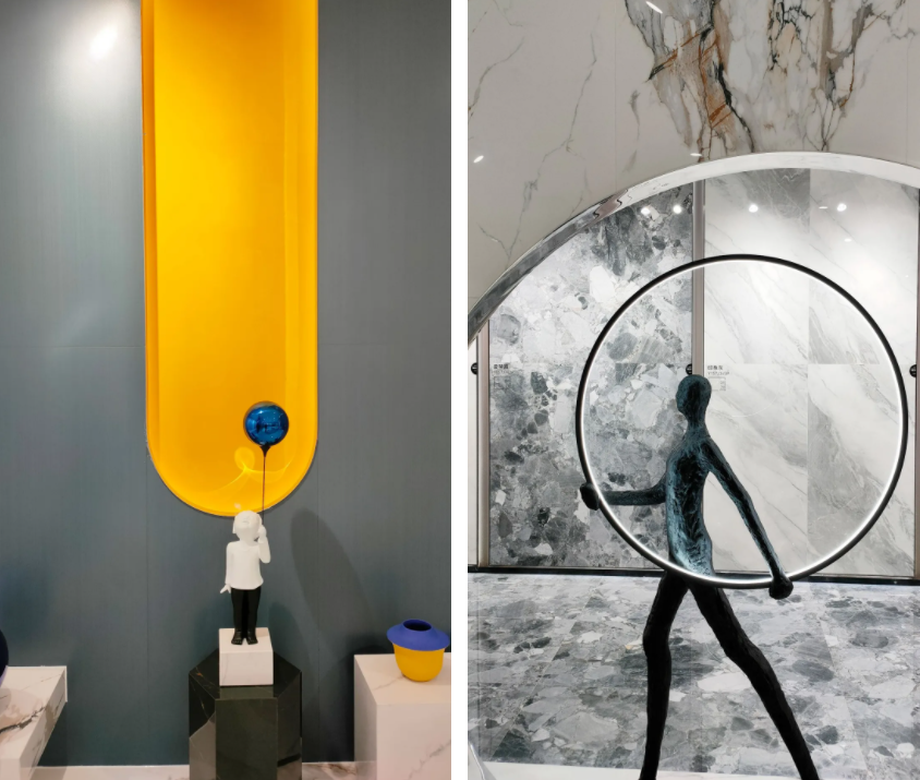 作为新品展示的重要窗口,值此年会之际,格仕陶“梦赏家”展厅再度时尚升级,焕新呈现,愈加凸显品牌鲜明调性,展厅在镜花云裳、浮光掠影、窈窕冷艳的美学基础上,融汇全球尖端时尚元素,共鸣国际审美趋势,呈现色彩至美搭配形式,每个角落都蕴藏陈设的巧思,给大家带来耳目一新的视觉享受,实力圈粉。