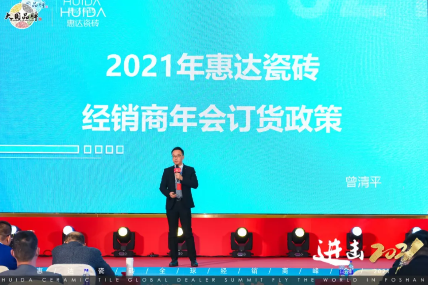 惠达瓷砖销售部总监曾清平主持2021年惠达瓷砖经销商峰会认购环节,认购会场面异常火爆,经销商认购热情居高不下,惠达家人以实际行动支持品牌的发展,成功打开了惠达瓷砖2021年开门红的良好局面。