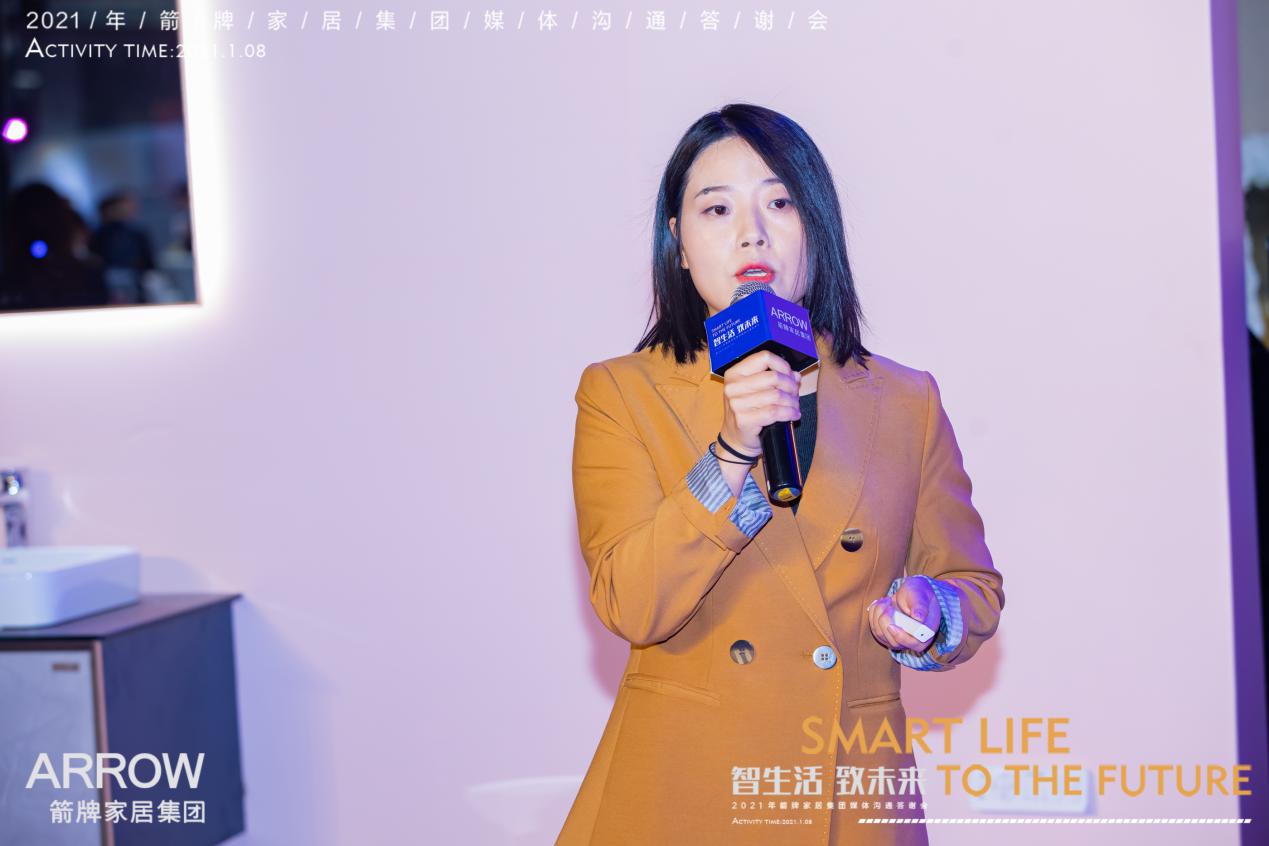 会上,箭牌家居集团董事副总经理谢炜发表致辞,与大家一同分享了箭牌家居2020年走过的历程和2021年的美好愿景,对媒体朋友一直以来的关注与支持致以诚挚感谢。他表示:“箭牌家居集团作为产业智能的实践者,产品通过各种感应器及联网技术,实现了人与卫浴产品之间的智能互动及卫浴与卫浴产品之间的互联互通;作为智慧生活的观察者,将线上线下渠道全线互通,将人、货、场有效进行了结合,打造场景化消费,让消费者购买更便利;作为用户互动的活跃者,营销事件频频刷屏,箭牌家居通过独到的洞察与运用明星、原创音乐等组合拳,在618和双十一都取得了全网营销的好成绩,未来,箭牌家居将带着智慧家居大家的梦想和期望,持续不断创新发展智能家居,在品牌、产品、服务、不断向上。”