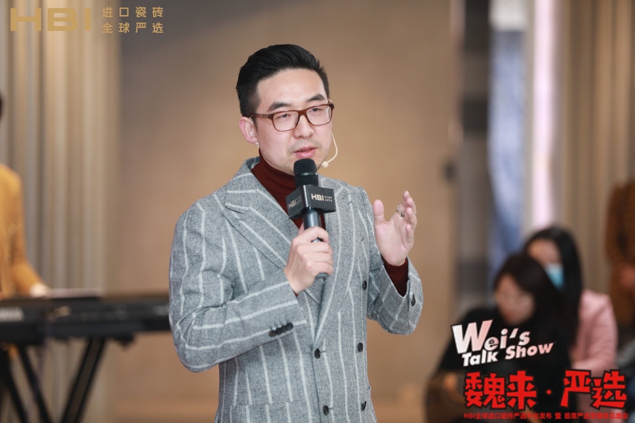 此次发布会最大爆点,必然是HBI平台创始人、首席严选官魏继国先生的wei’s talk show,魏继国先生介绍道,在过去的15年职业生涯里,他看到了国外优秀的瓷砖品牌的经营策略,通过对中国市场的深入调研后,发现国内瓷砖行业在“设计”以及“模式”上都还存在着巨大的潜力,是否可以整合这两个版块的资源,结合自己多年来的国际化视野和进出口贸易经验,改变国内瓷砖生意人的经营状况,让年轻人重新爱上瓷砖,成为他要做“严选”的第一个思考。