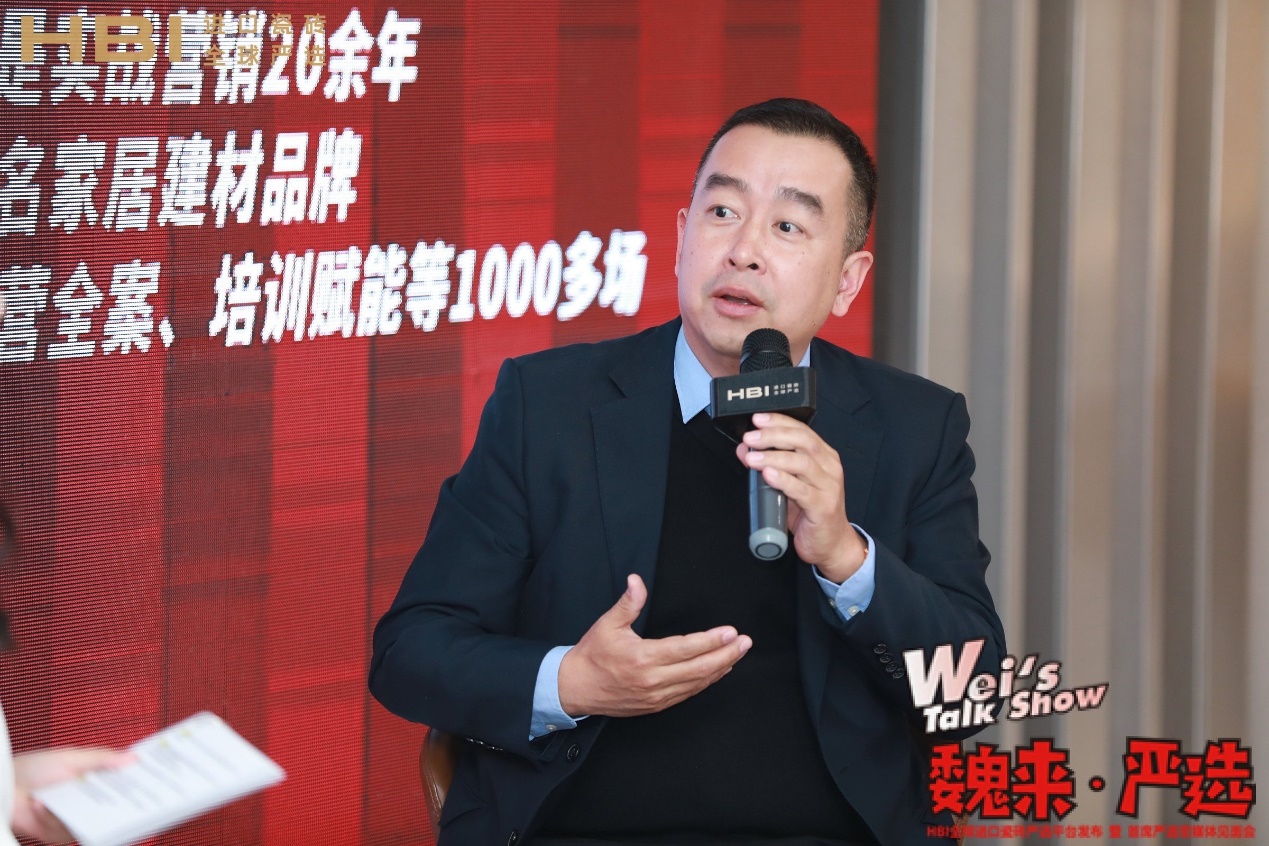 魏继国先生特别向在座媒体和观众分享自己过去在瓷砖行业上的故事和洞见,分享了创办HBI全球严选平台的初衷,以及对平台加盟商从品牌、设计、制造、预算、服务乃至团队理念的严选标准。他强调,“首席严选官”不是噱头或者称谓,而是他对产品、对行业、对于消费者的一种尊重和使命。