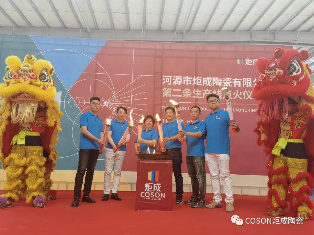 当天上午,炬成陶瓷特别准备了“醒狮点睛”环节,祥狮欢呼雀跃,寓意鸿运当头,财源滚滚!随后,黄董事长与炬成陶瓷高管团队手持火炬,共同点燃第二条生产线的卓越之火。