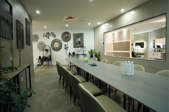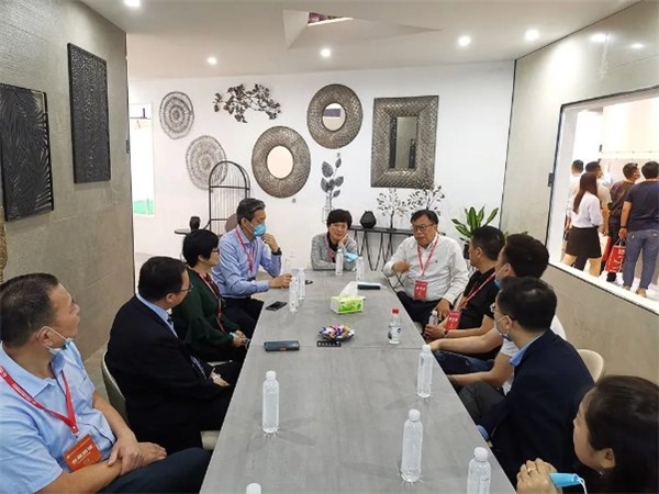 宝达集团执行总裁张刚与福建省设计师在萨兰特材料展示厅的精彩互动.