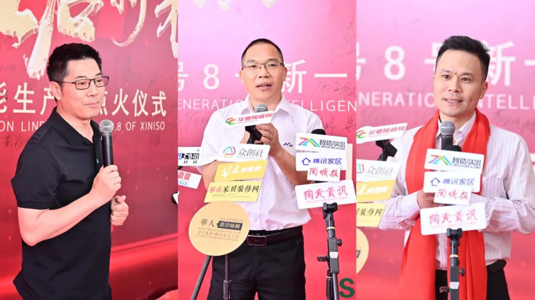 在仪式最后,母总和研发部曾总以及来自泉州英良石材有限公司总裁齐飞先生分别接受了媒体采访。采访中,母总明确表达了新岩素家居未来的方向就是智能大居家,要通过打造岩板产业集群切入大家居领域,在智慧工厂、个性定制、创新聚焦、柔性生产上持续发力。研发副总曾军华先生重点谈到了研发创新,未来在工艺端、材料端、应用端、设计端持续创新,做到全品类、全规格、全花色覆盖,一月一小变,三月一大变。
