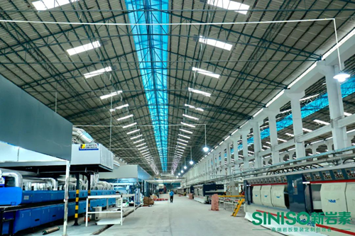 这两条生产线除了能生产从800*1400到1200*3000规格、2.0mm—20mm厚度的产品外,同时能实现柔性定制。这两条窑炉线的投产对新岩素品牌在进入定制大家居行业迈出了重要一步。