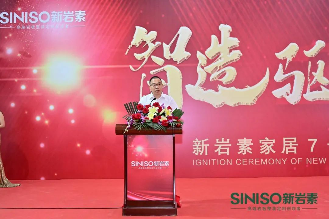 新岩素生产基地总经理母军先生在致辞中展望了新岩素战略方向与落地规划,以坚持打造智能化、数字化、创新型的大家居智造标杆品牌为目标。