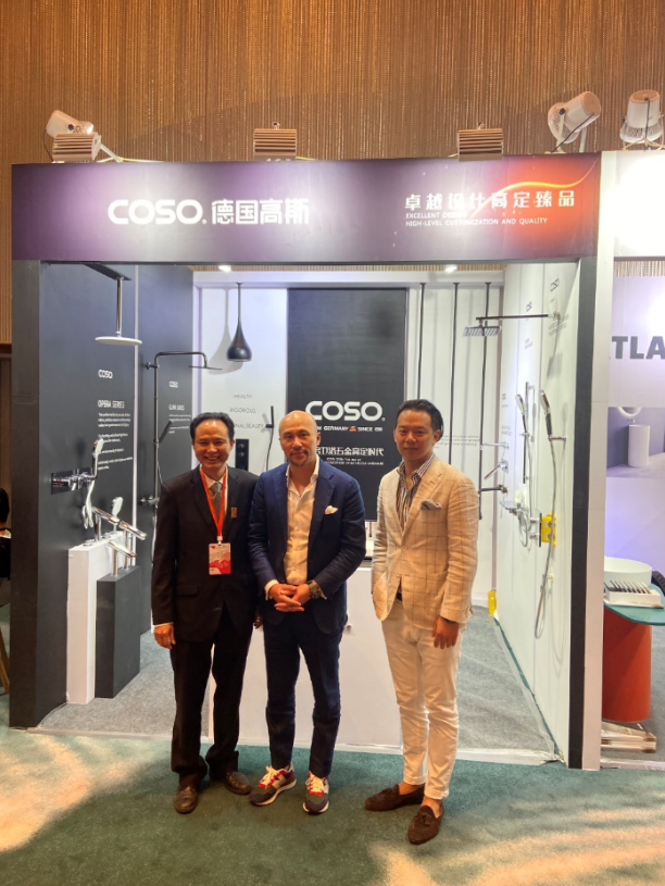 会后,设计界大咖莅临了高斯五金龙头与花洒的产品展示区,COSO亚太区总裁胡结辉先生分别与CCD香港郑中设计事务所创始人兼设计总监郑忠先生、亚太酒店设计高级研修班创始人刘坤先生、CCD香港郑中设计事务所设计总监庄瑞安先生、海南设计师於勝利先生、刘言喜先生、马里奥设计师深入分享了COSO五金产品的优势与行业意义。