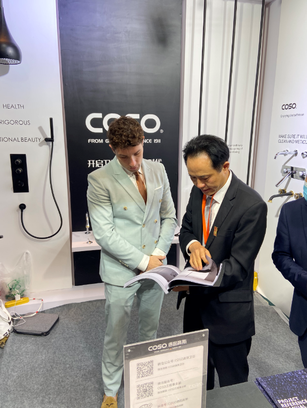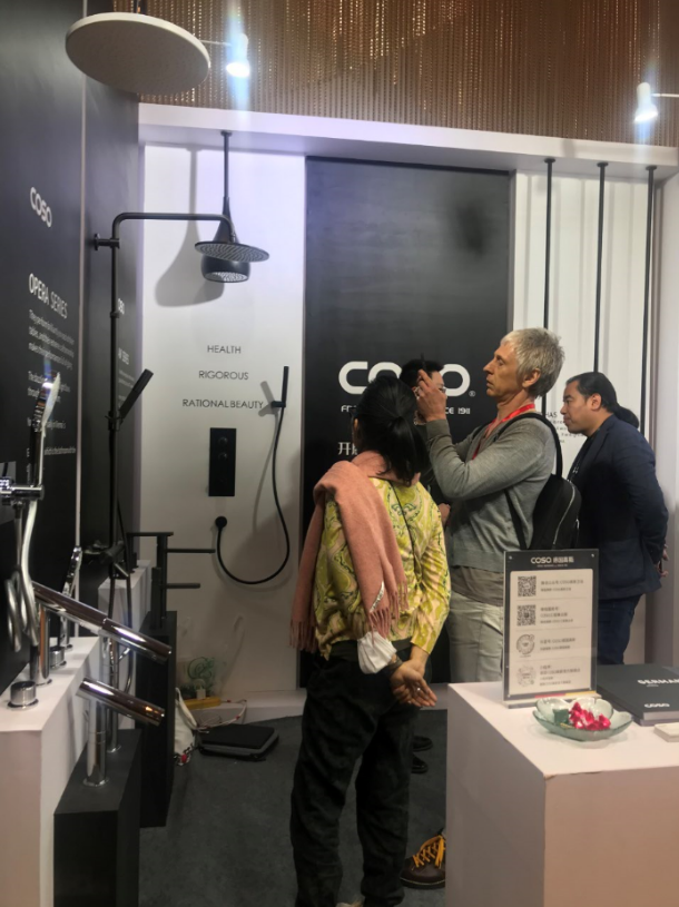独一无二的设计师款水滴龙头成为了本次展示的亮点,吸引了各方专业人士的驻足参观与拍照欣赏,各系列的龙头花洒也成为了展示佳话,还有幸吸引到了MQ Studio的创办合伙人兼首席设计师Andy Hall的目光,这正是对COSO高斯五金产品的高度认可。