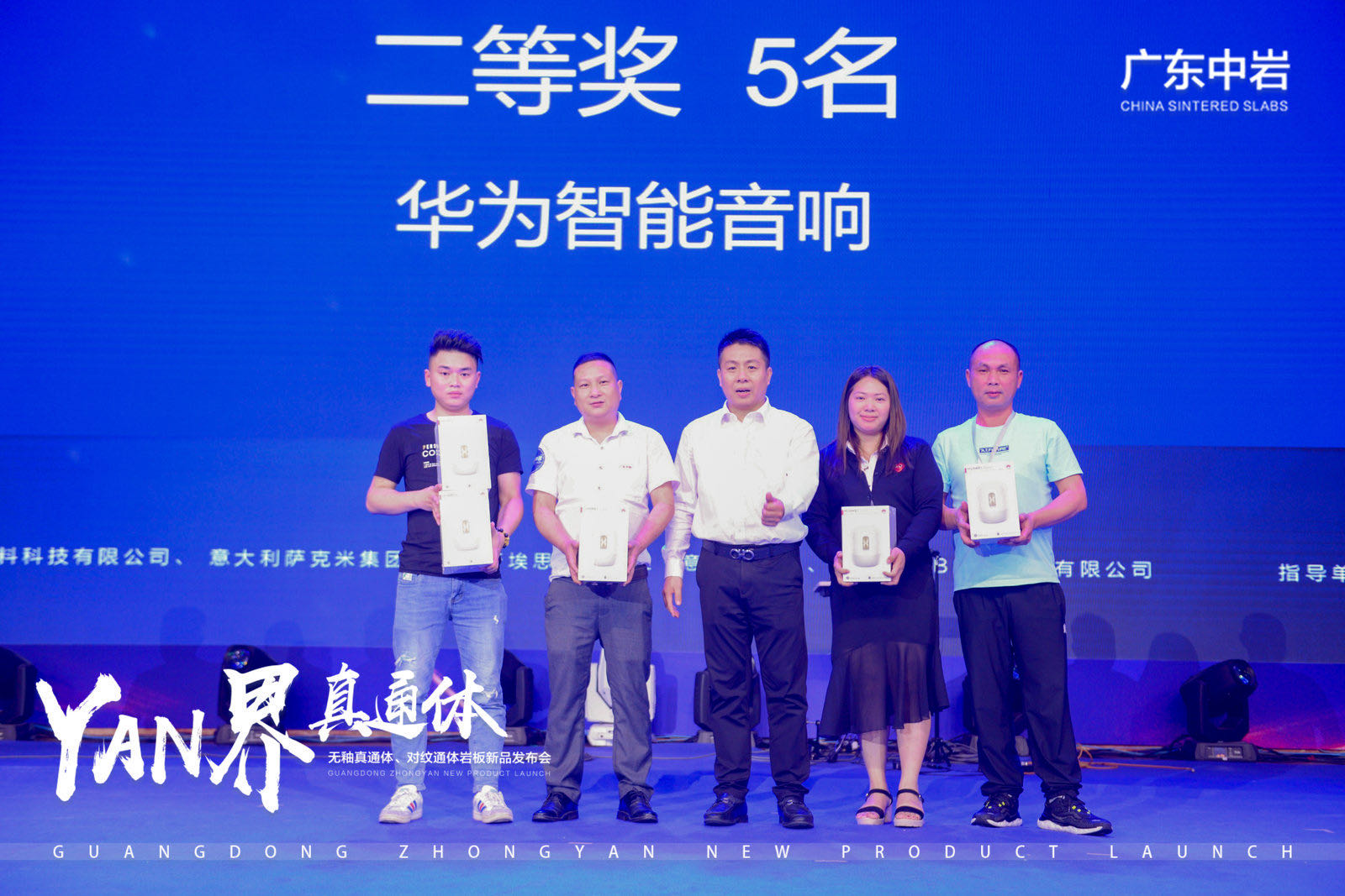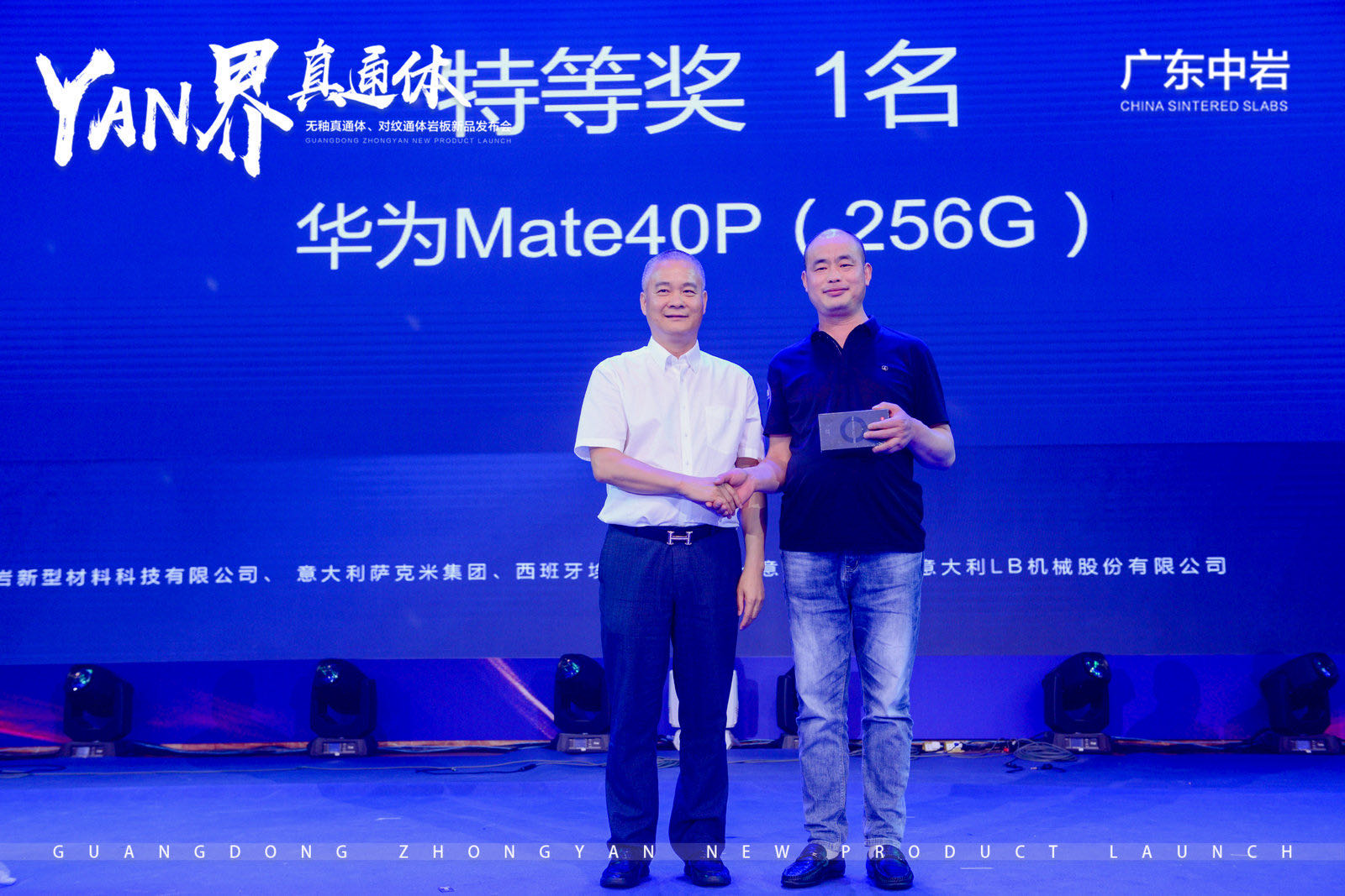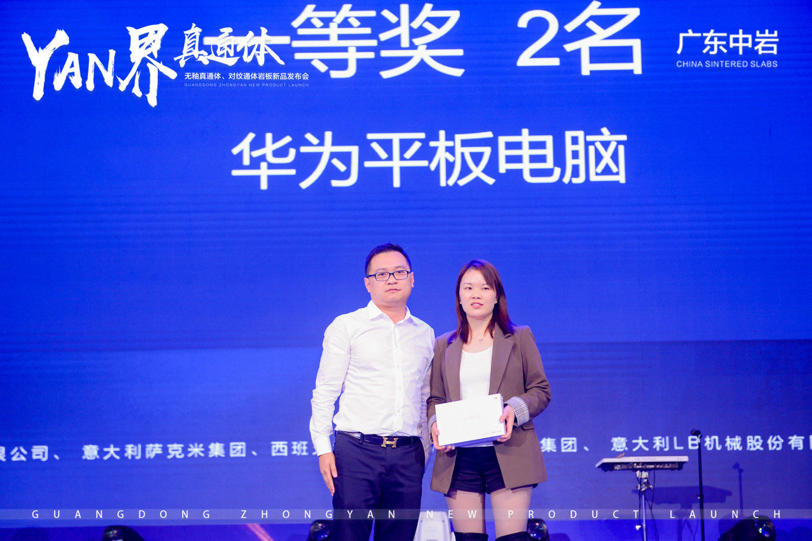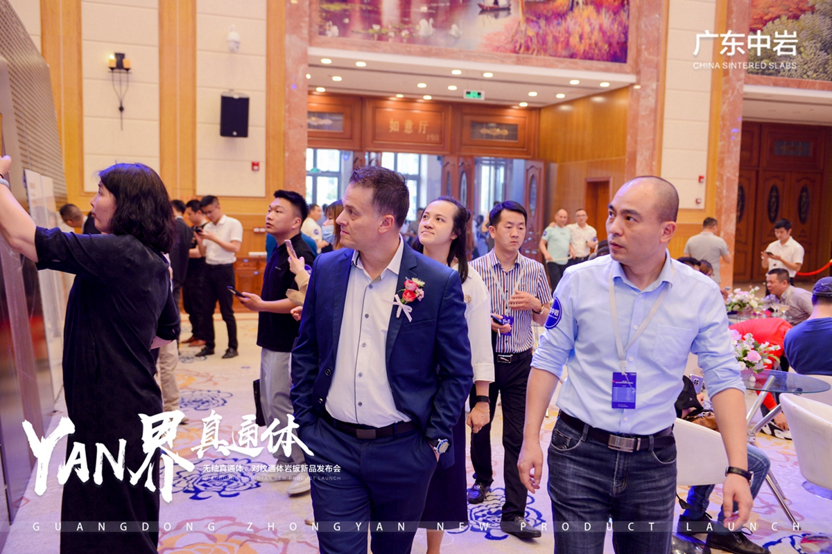 董事长苏绍恒先生、生产总裁苏广年先生、营销总裁苏彬年先生、生产总经理郭春祥先生、广东中岩事业部总经理赵欣先生、第一营销中心总经理区金桐先生、第二营销中心总经理邱国胜先生、萨克米机械企业(香港)有限公司销售总经理李强辉先生、埃思玛格拉丝.意达加集团亚太区总经理鲁本先生、意大利LB机械股份有限公司中国分部代表邓润、美的集团范庆弦先生、广东陶瓷协会会长陈环先生、深圳市家具行业协会秘书长褚福战先生、营销总裁助理杨浚宏先生、集团市场战略总经理徐秀伟女士,与20多家主流媒体共同见证全球目首发新品——无釉真通体、对纹通体岩板。