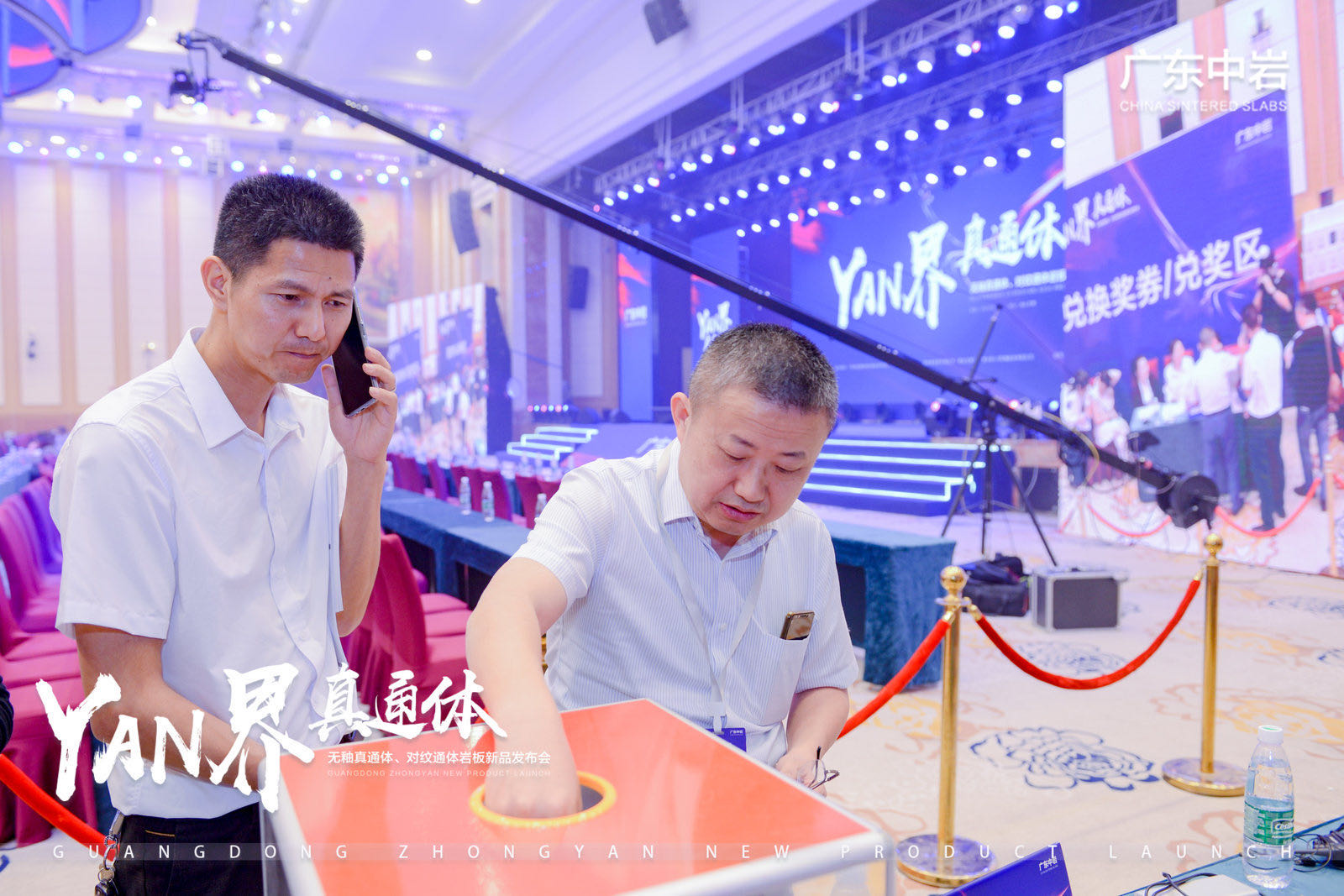在活动环节现场,众多参会的经销商都放下了自己的“矜持”,疯狂砸单!场面一度处于喧闹不止的状态。跟踪报道的媒体朋友更是私下采访了我们很多到场的经销商和加工商,对于广东中岩的真通体岩板的技术壁垒有了深入的认知,并对中岩的实力表示赞赏与佩服。