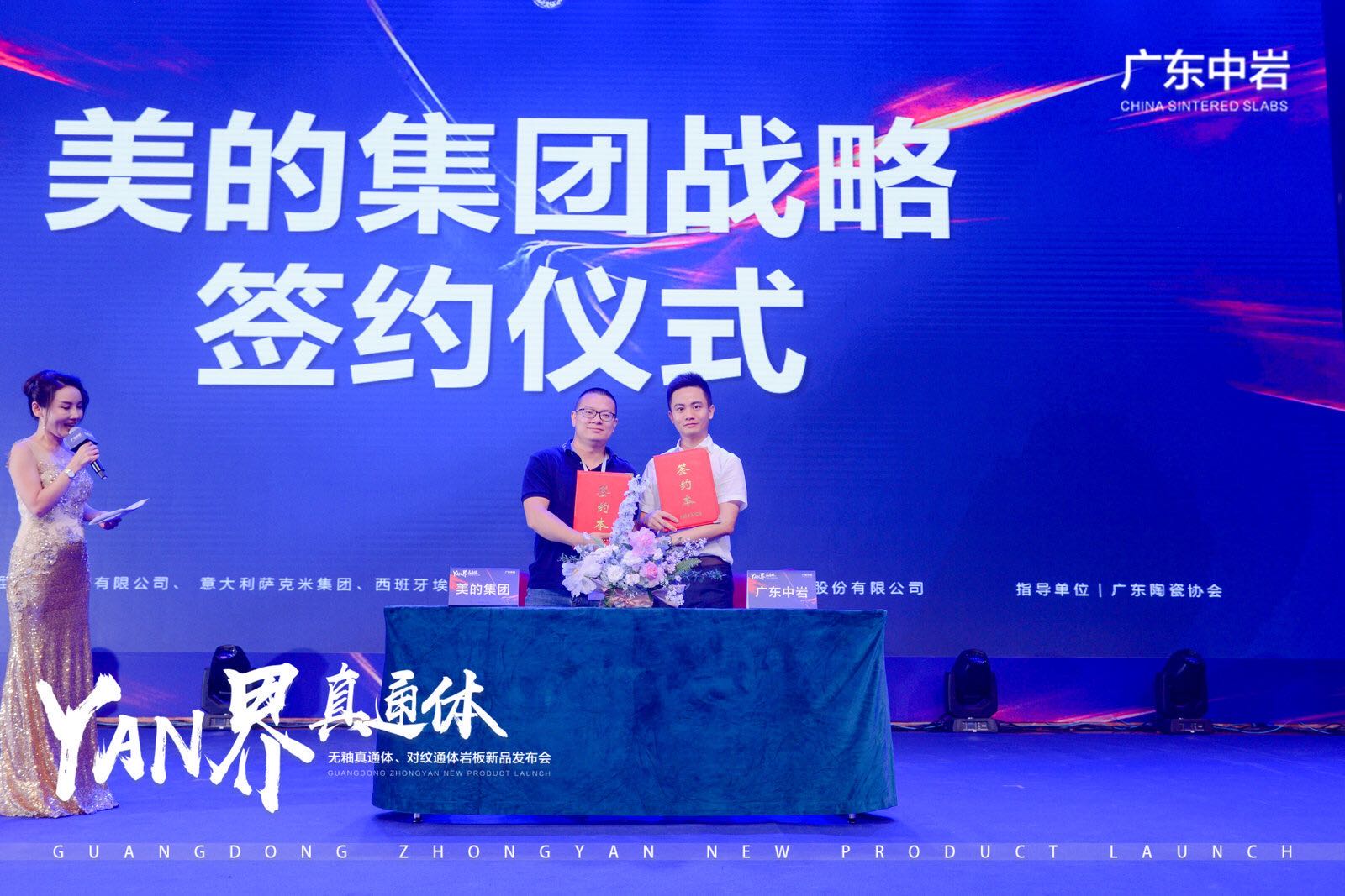 会议现场,美的集团负责人范庆弦与营销总裁苏彬年为广东中岩的战略合作举行隆重签约仪式,与广东中岩达成战略合作,强强联手,合作共赢,为岩板的多维度应用发展助力!