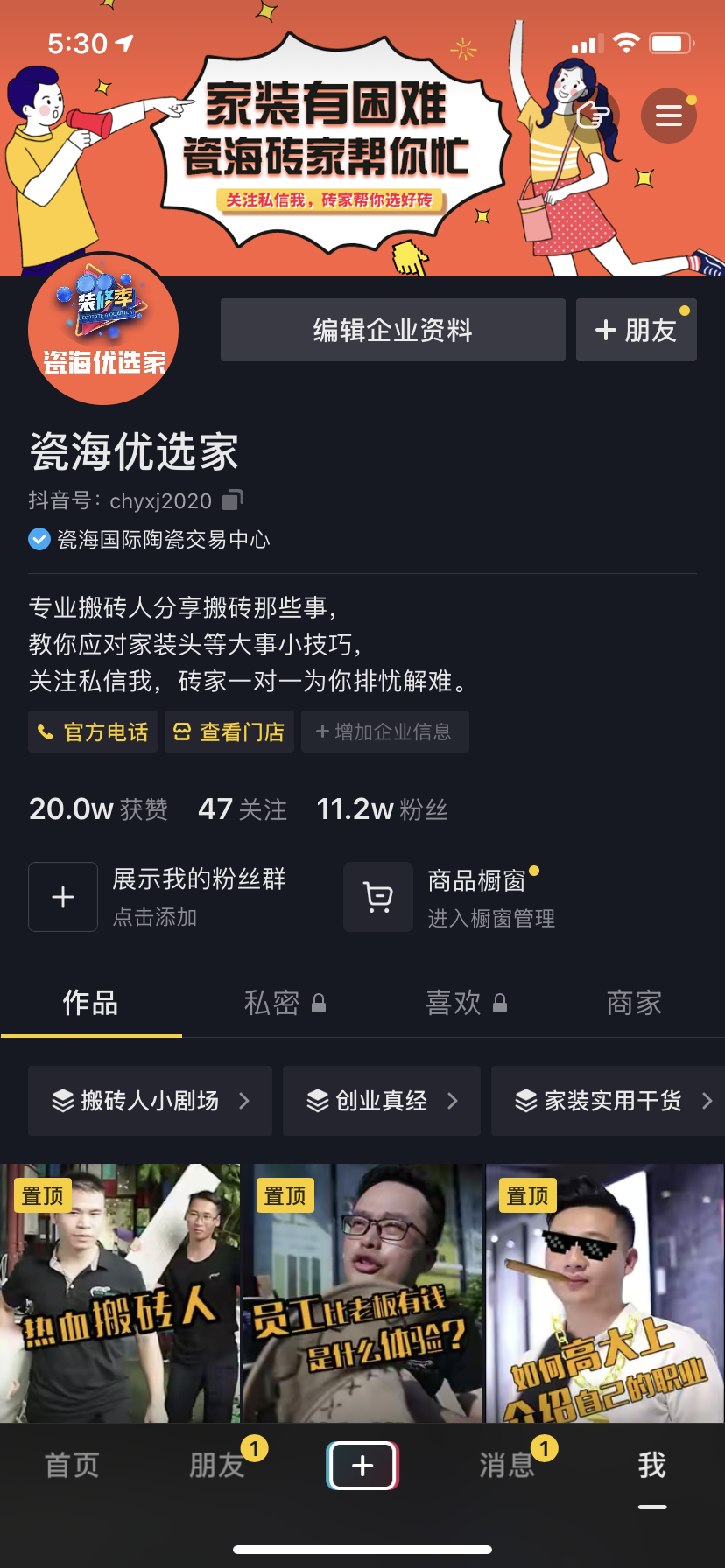 佛山建材行业抖音号 瓷海优选家竟然有2000w浏览量