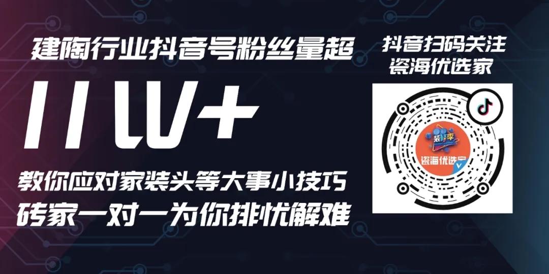 瓷海国际从2020年开始重新布局,对整个建材行业现状做出了精准判断,快速建立抖音号-瓷海优选家账号!依托园区内建材企业资源,在行业背景下,抖音账号也定位为家装建材类科普小知识,包括家装技巧、家装选材、风格搭配等都可以在抖音号-瓷海优选家找到答案!