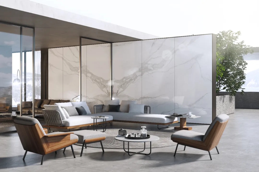 秀岩岩板六大产品系统,强大的产品体系,广泛应用支撑:飘窗台、茶几、电视背景、橱柜板面、中岛台、浴室柜、护墙板等空间,市场前景空间巨大。